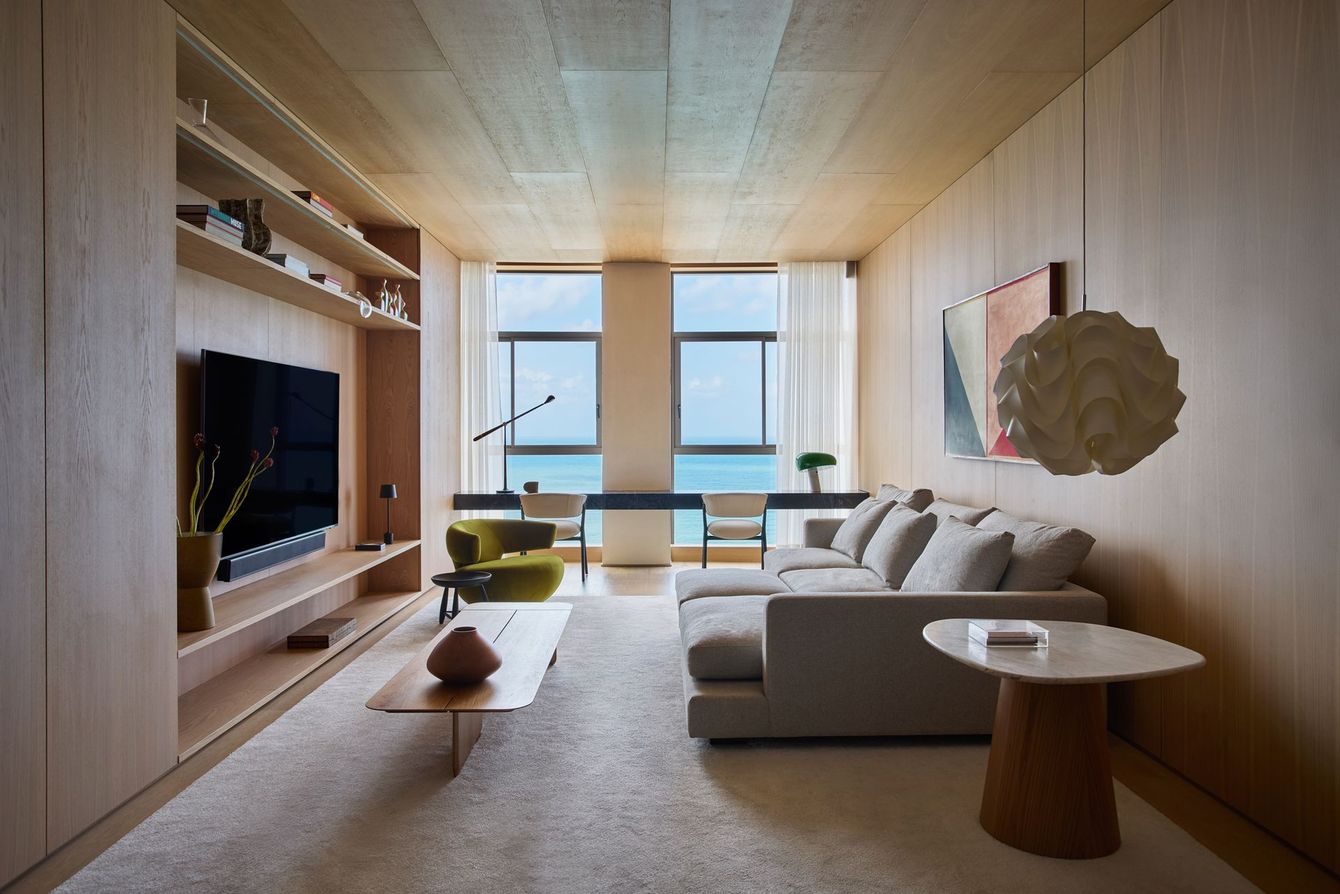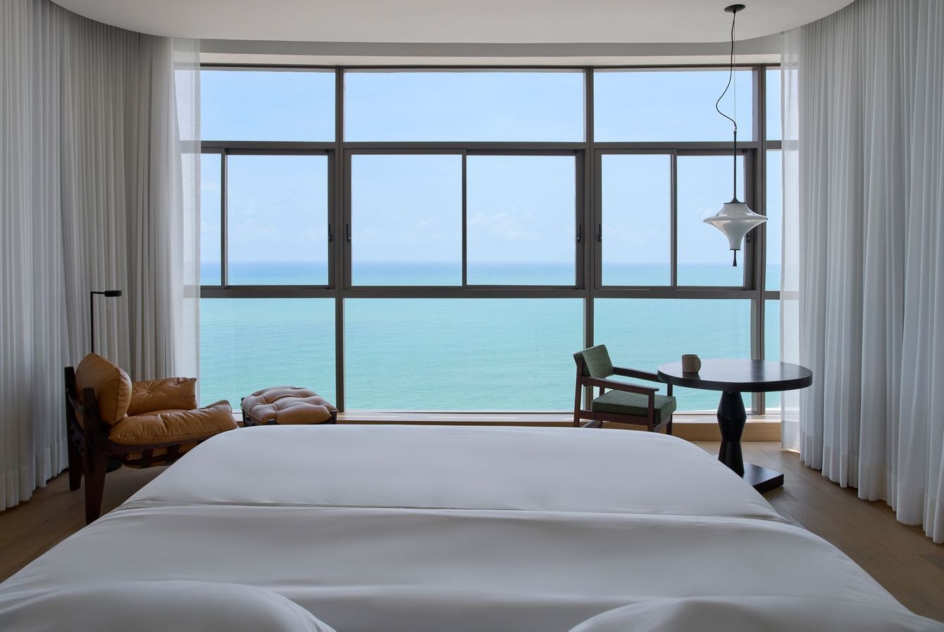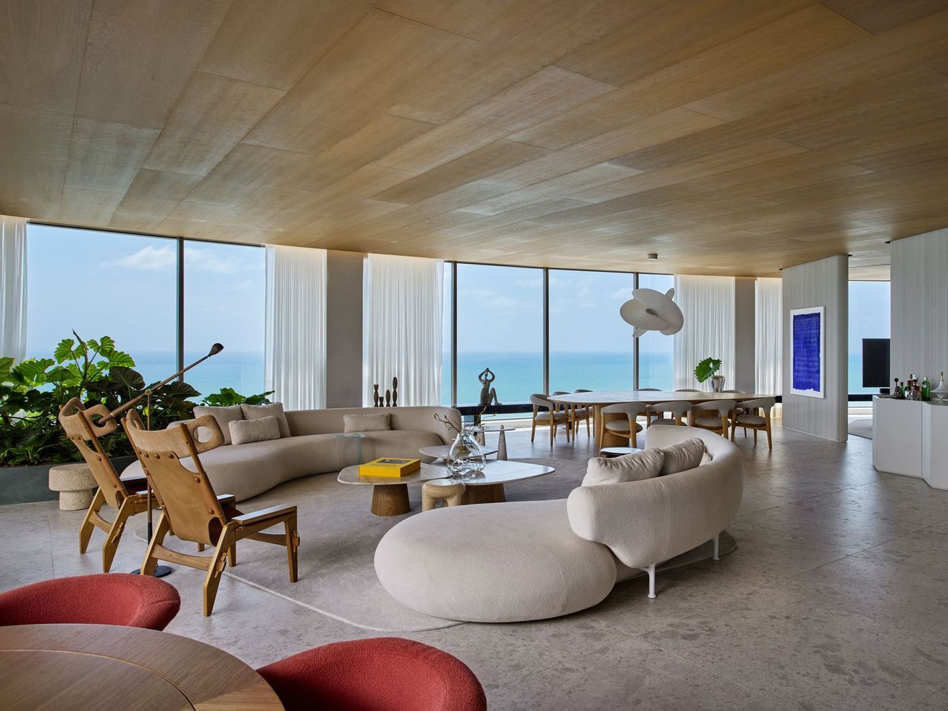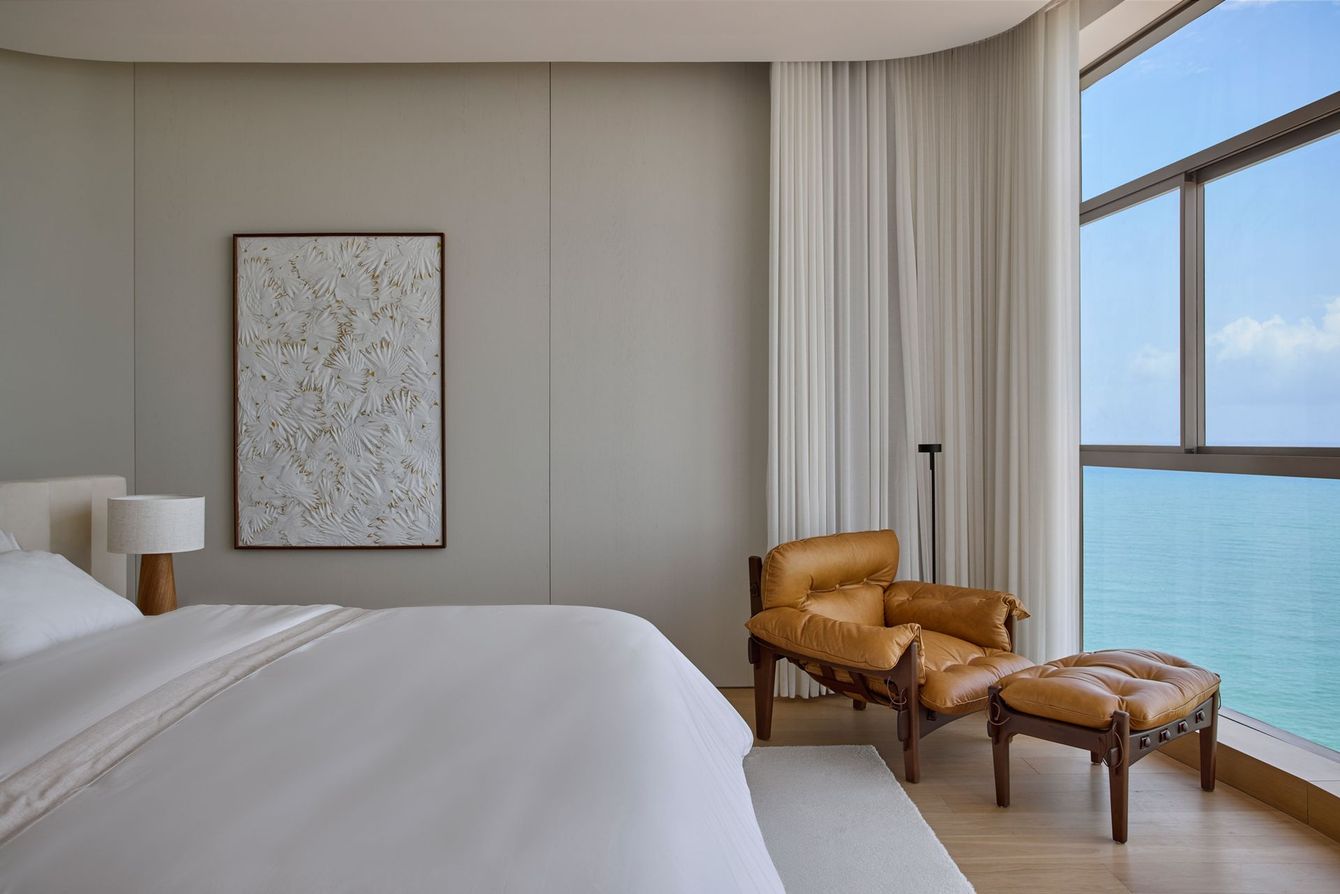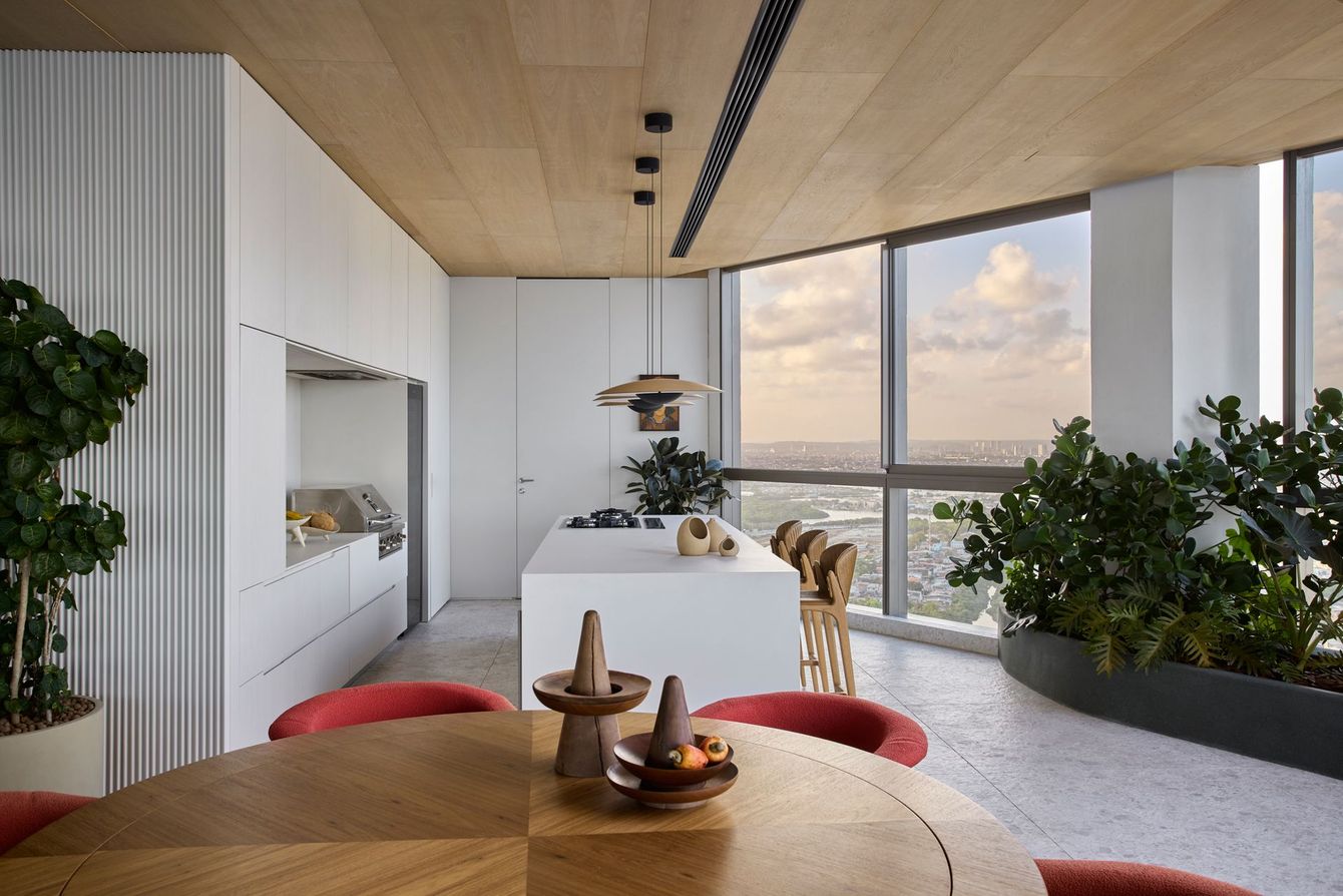 With a view of Boa Viagem Beach in Recife, Brazil, the interior design project, signed by Architects Office, invites the landscape to enter the apartment by capturing the vastness of the horizon.