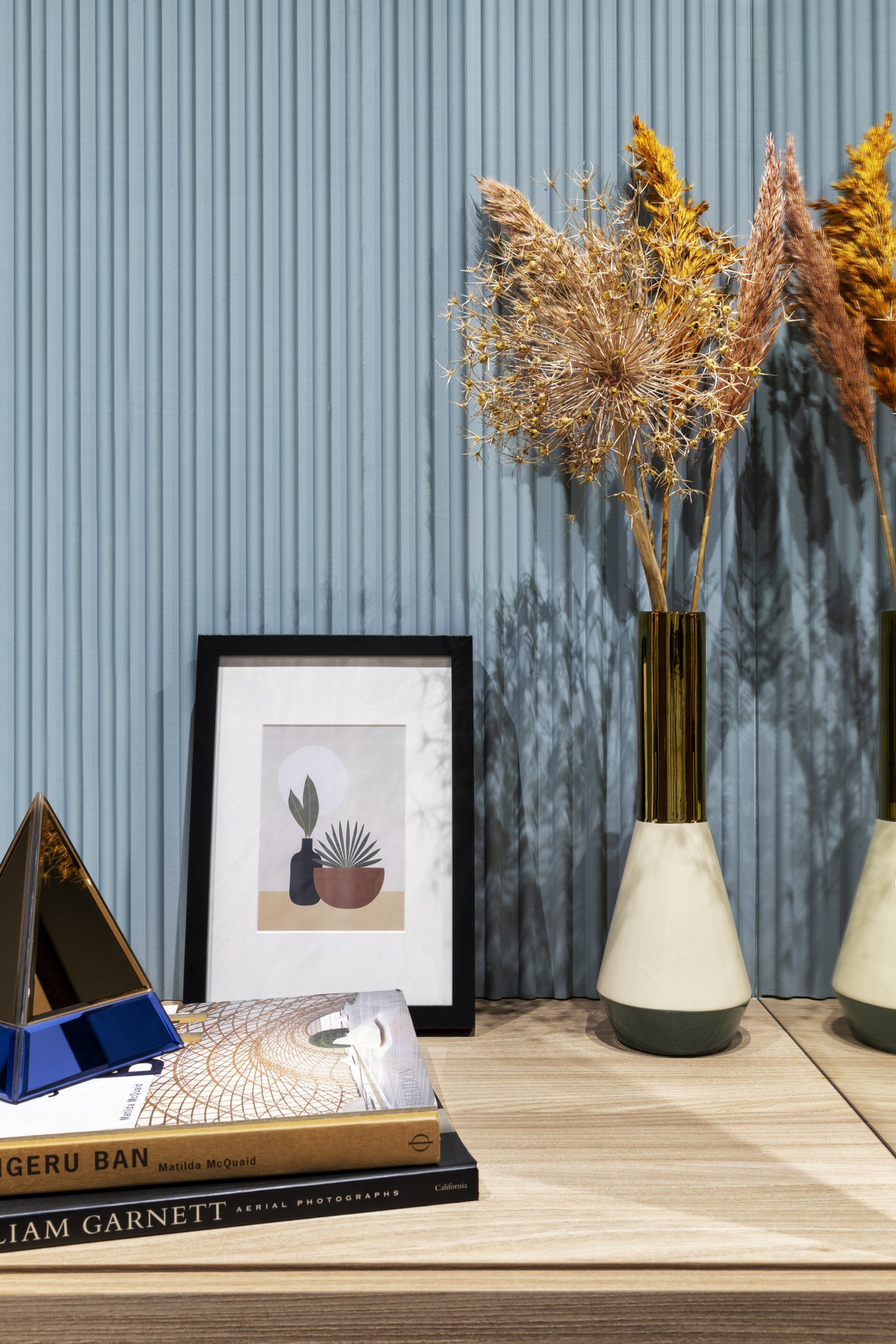 There is another element that blends with the colour and the decorations of the wallpaper, breaking the continuous walls with a three-dimensional game of solids and voids: the ribbed panel. These plaster panels consist of vertical rounded "sticks", whose presence gives play of light and shadows ton sur ton.