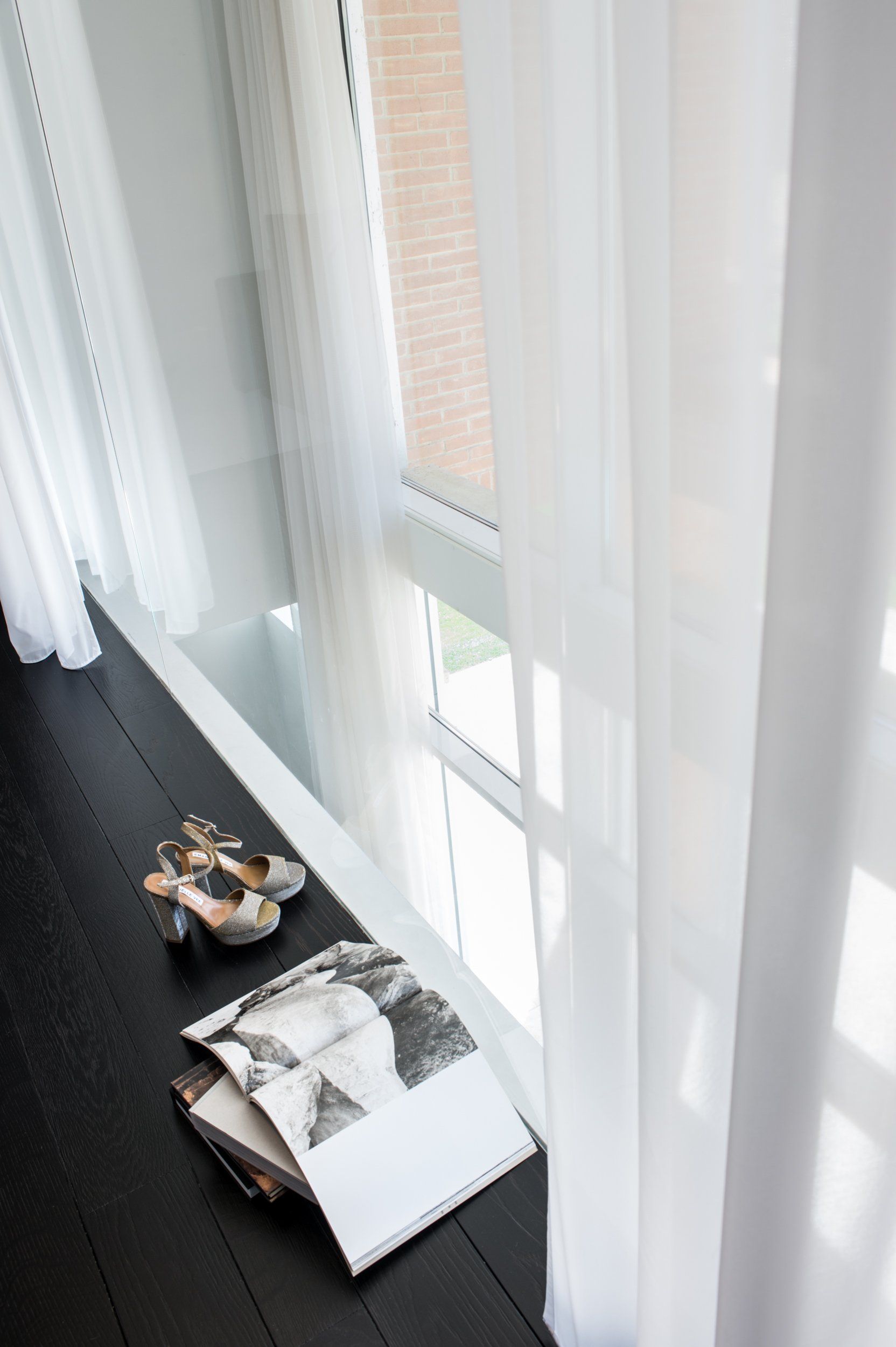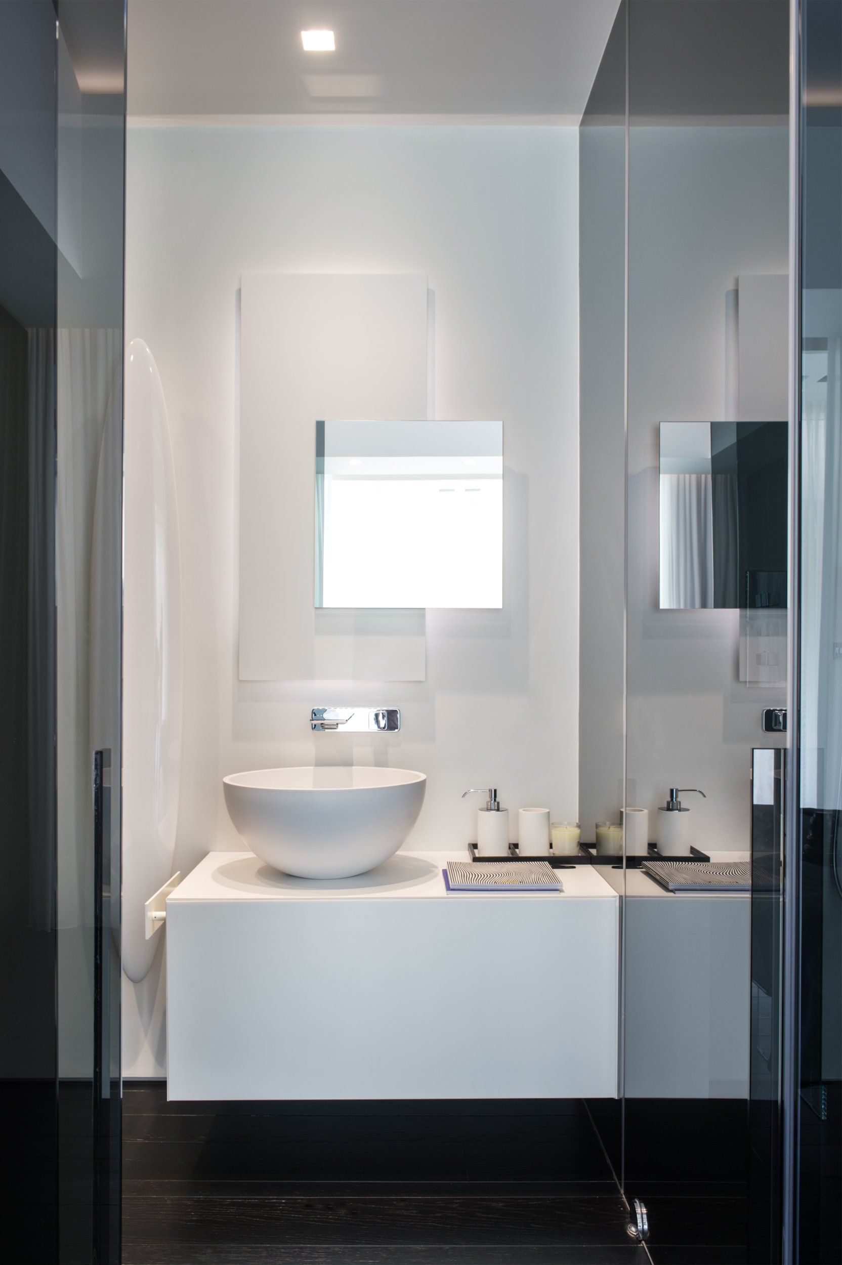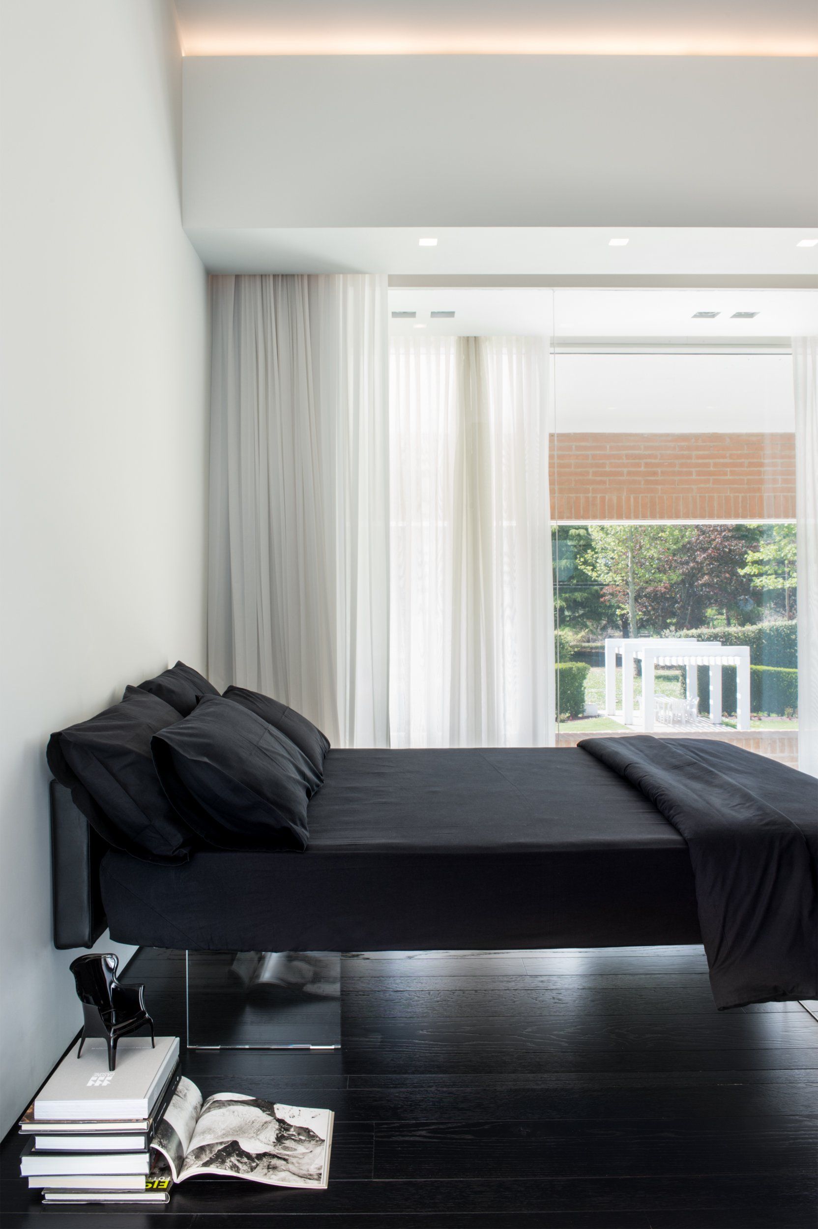 The first floor is entirely dedicated to the bedrooms. The ambience is distinguished by white surfaces with a velvet touch and wooden oak floors painted with deep black satin. It is characterized by the extreme formal rigor and cleanliness of lines, creating at times natural moments of chaos through the inclusion of studio designed furniture.