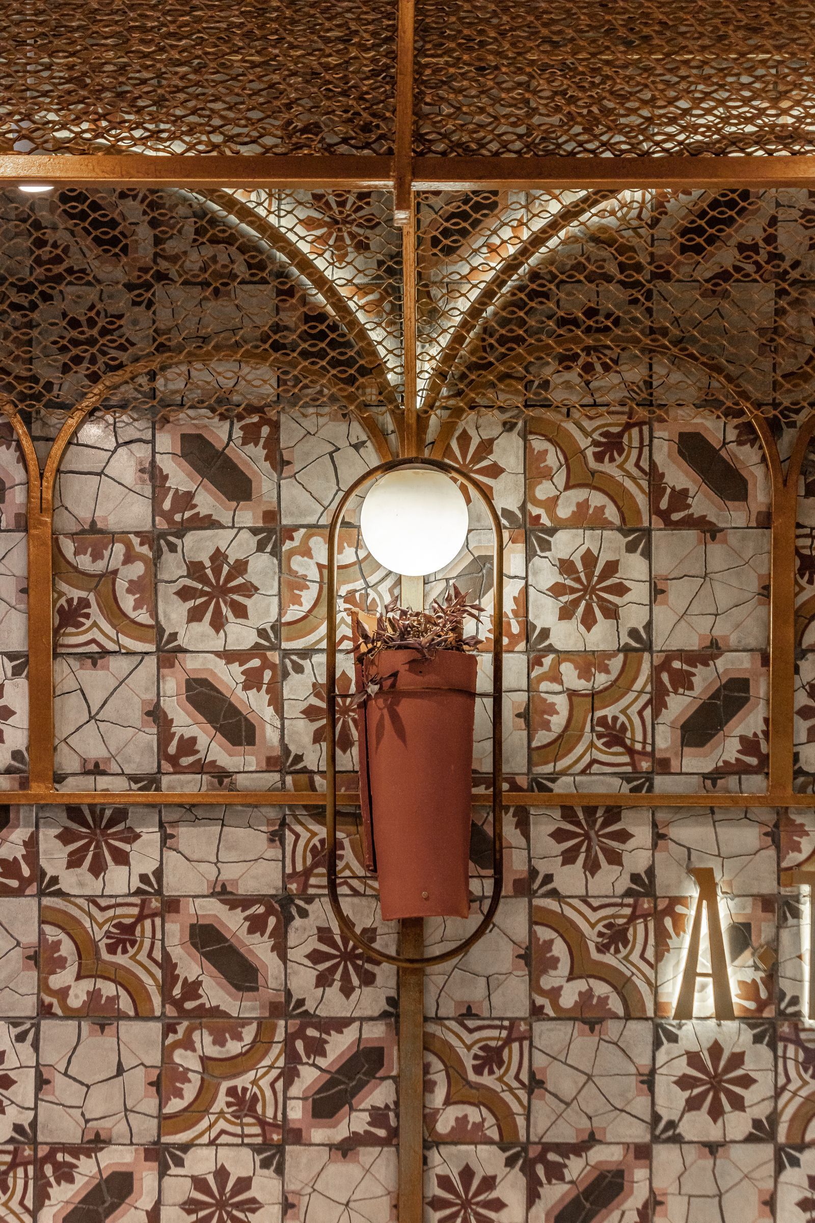 The spanish roof tiles are integral to the aesthetic DNA in a bifold manner: they are broken - signalling the passage of time - and their function has been reinterpreted as lighting. Curves, tiles and vegetation were all taken into account when designing the artifacts.