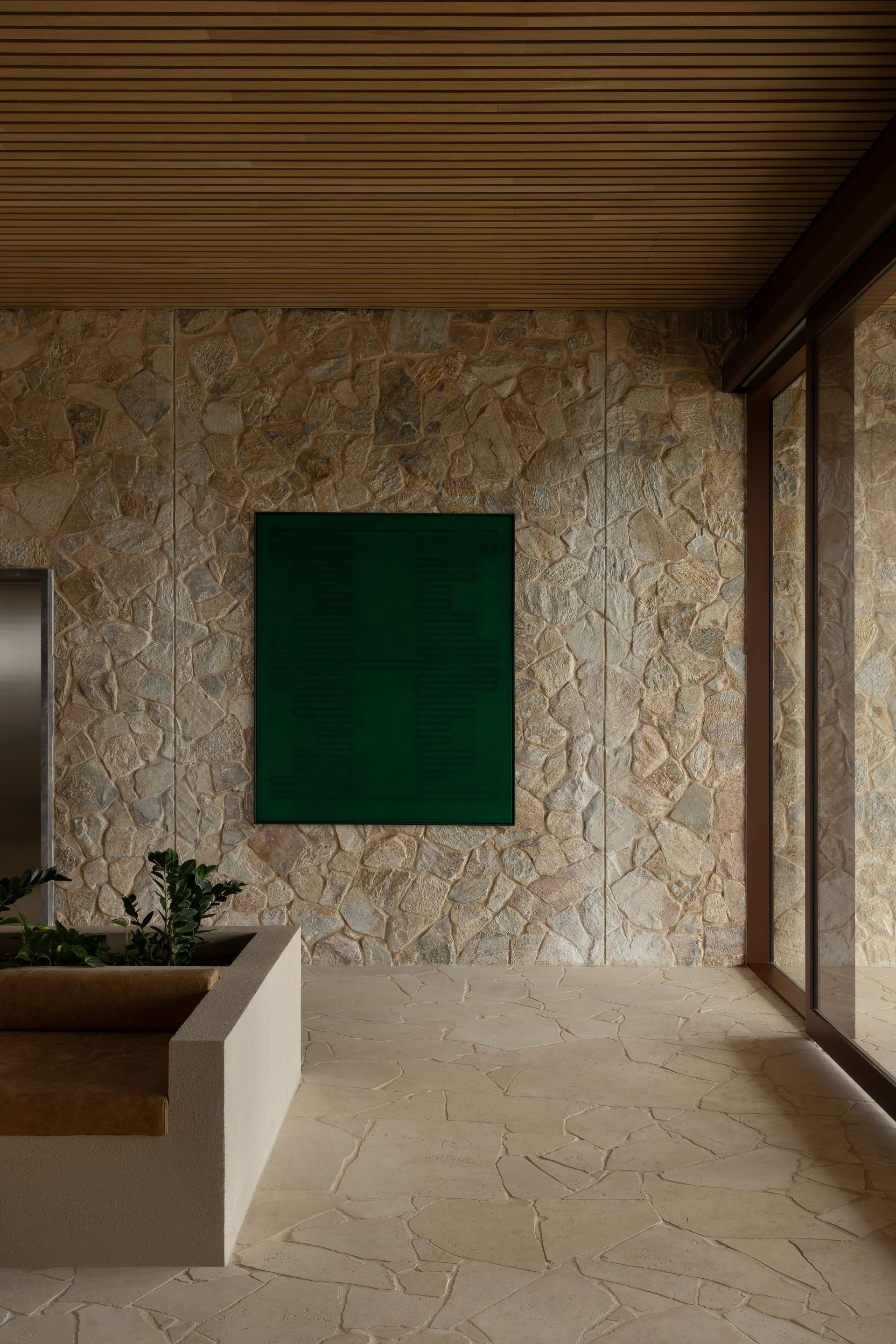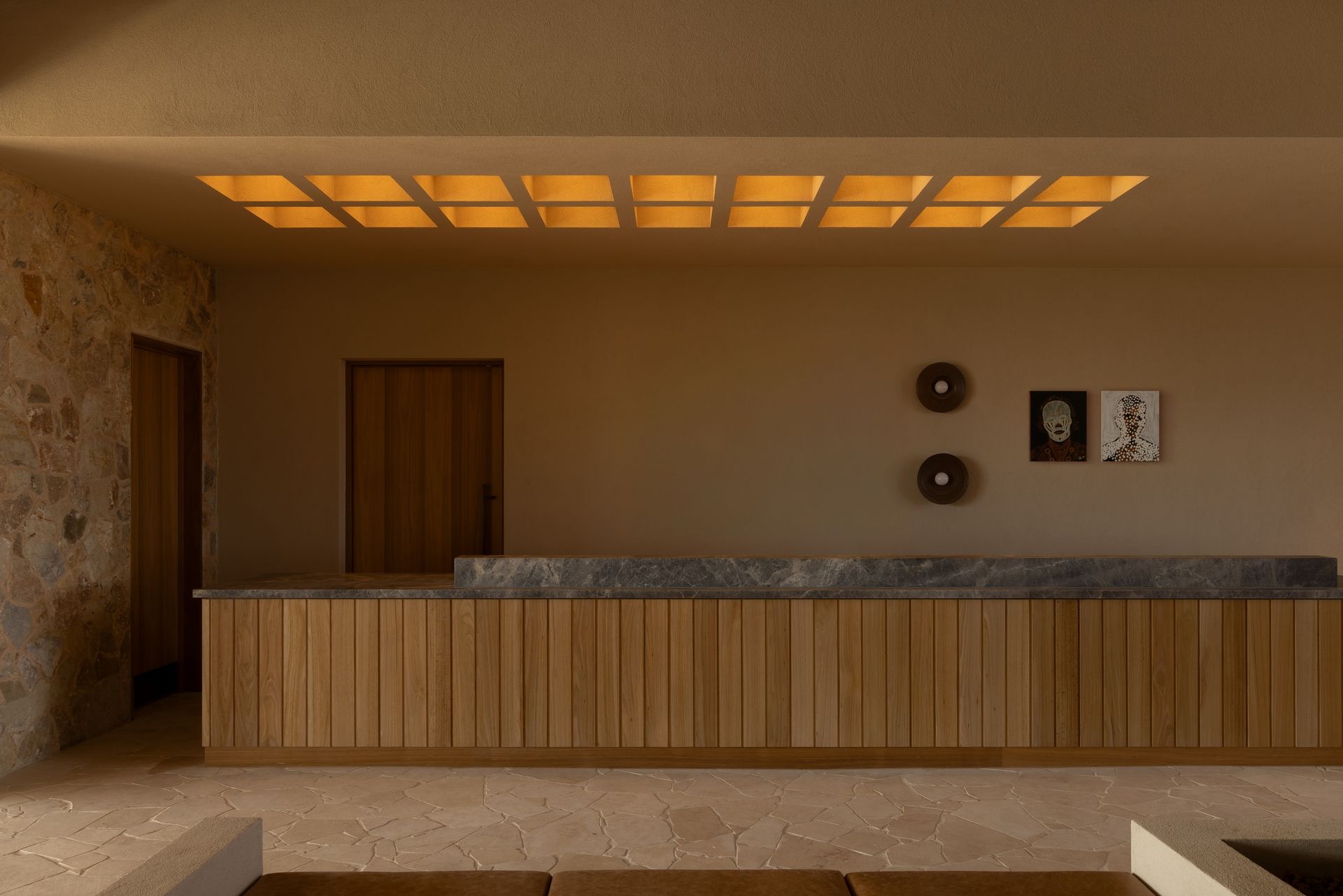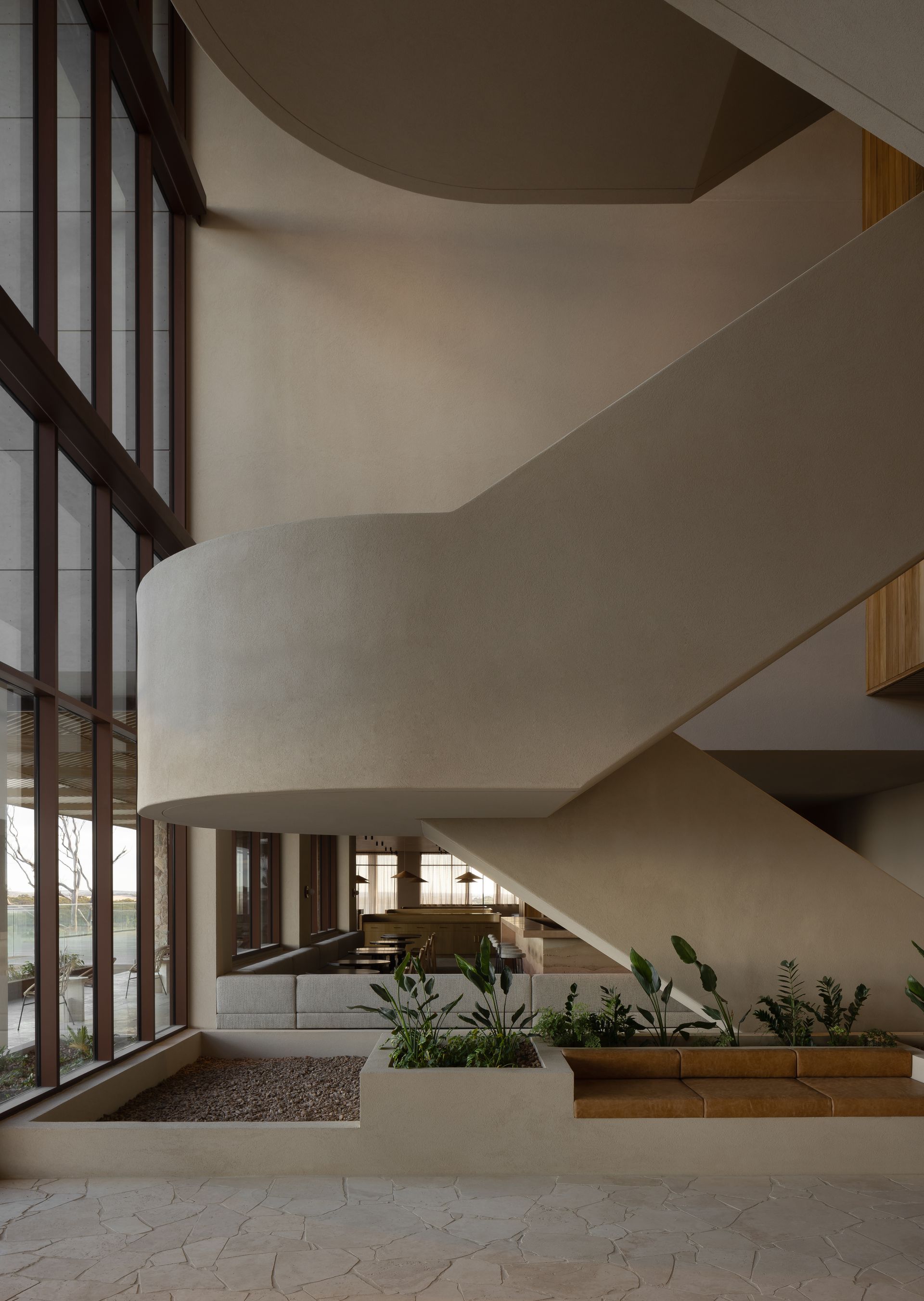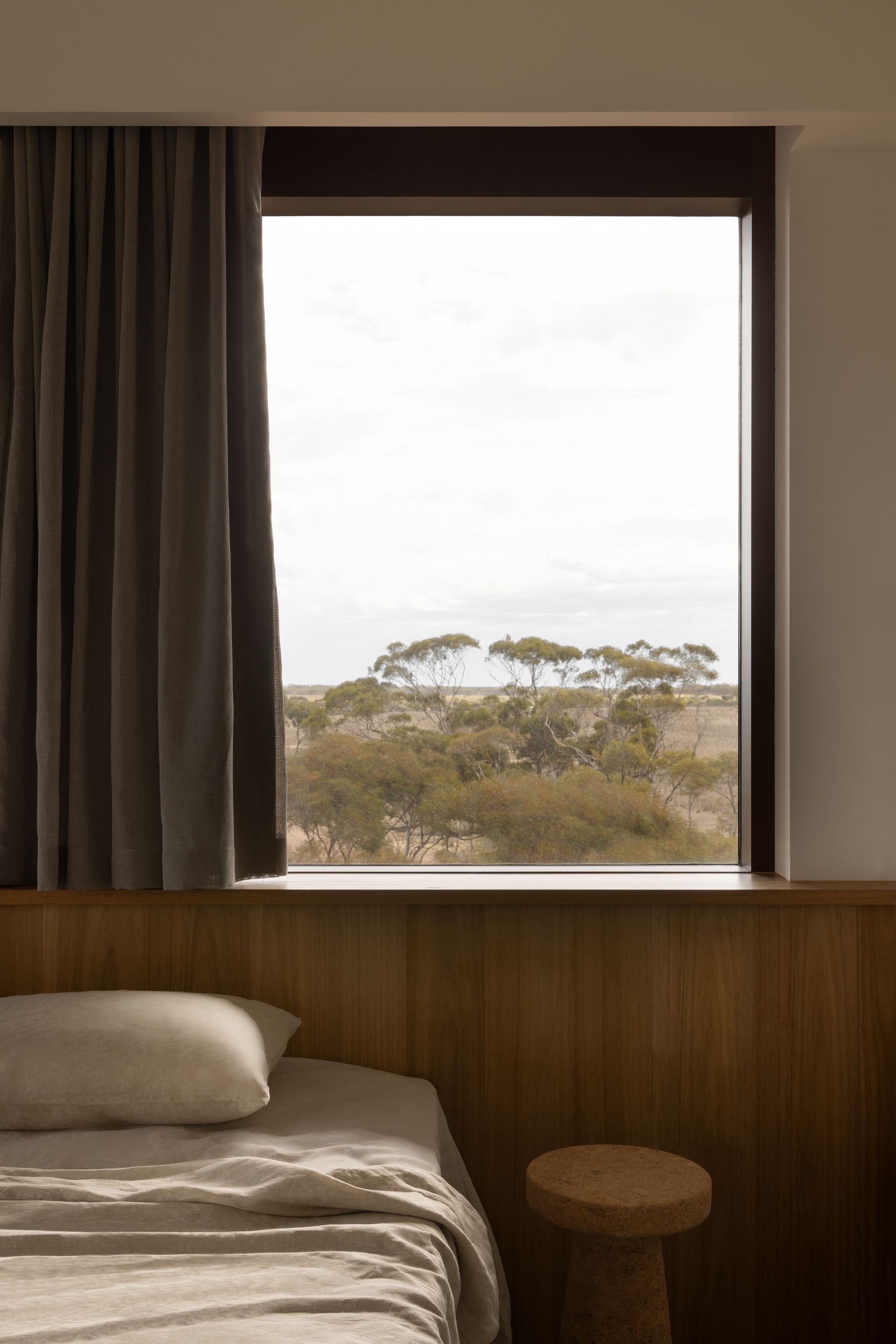 The interior design avoids pastiche, weaving African influences into the rugged Australian terrain in an authentic, respectful way. Inspired by the patterns, crafts, and colours of both continents, the design celebrates cultural richness while maintaining a deep connection to place. This modern aesthetic feels thoroughly of its time and rooted in the Australian mallee. Artwork and furniture from South Australian makers embed the project in local culture, highlighting both emerging and established creatives.