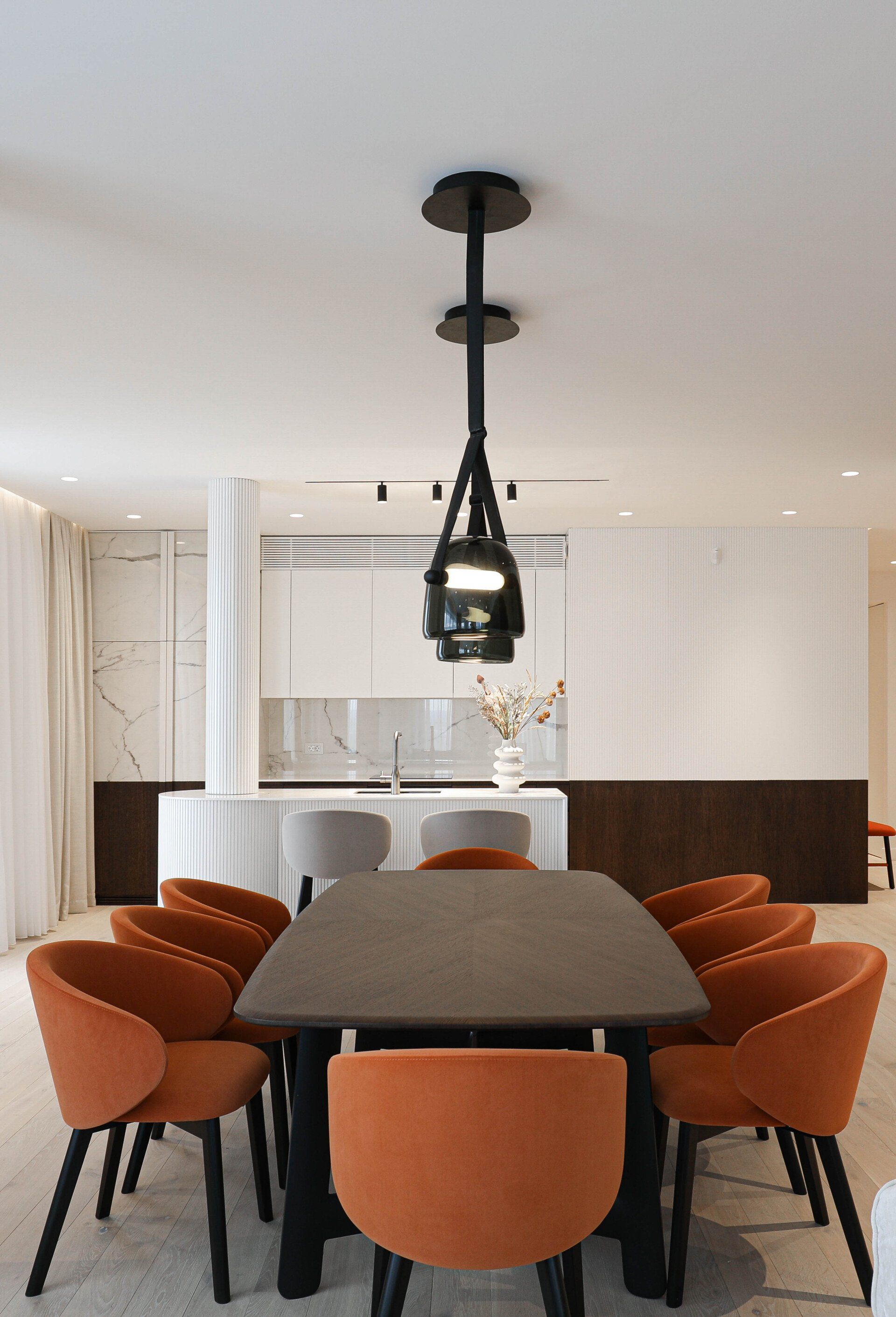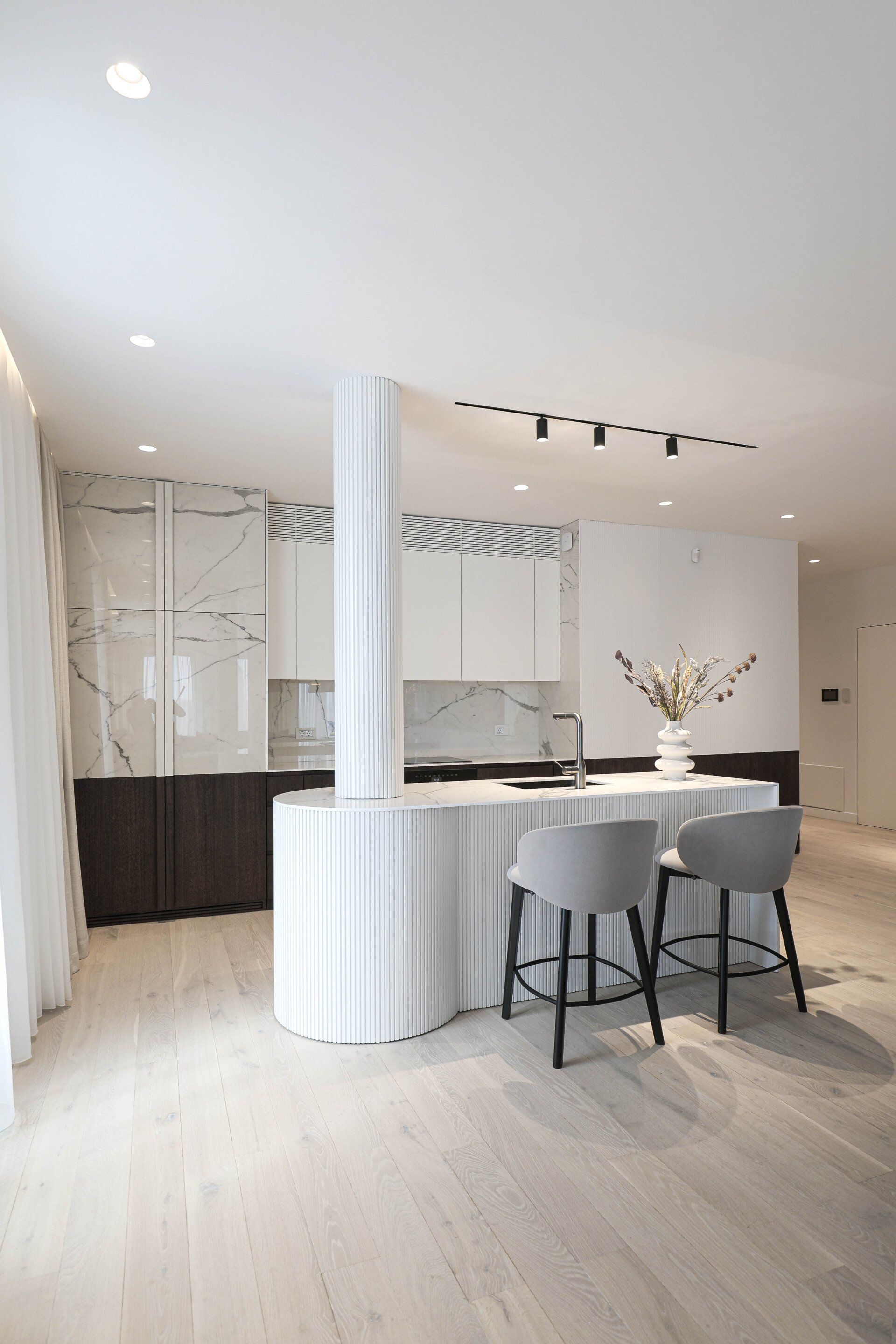 The poetic outcome hides a complicated smart home system that provides control over appliances, floor heating and ventilation, and the lighting scheme scenarios.