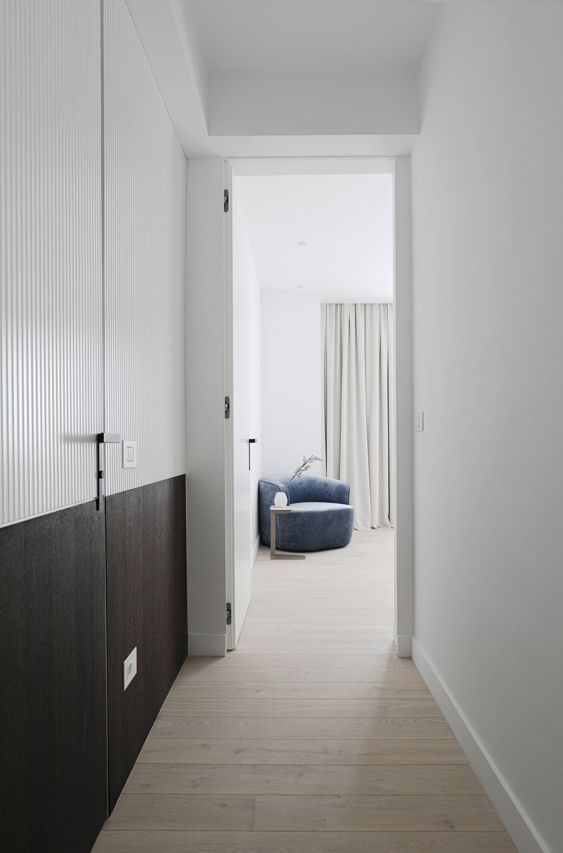 The apartment consists of a living room, a master bedroom, a second bedroom, a children room, two bathrooms and a vast terrace. The design approach is contemporary and minimalistic, withstanding the passage of time. All materials and products are selected as an interpretation of the seascape, such as Boen light wood sand-like flooring, the azure blue fabrics, the black glass Brokis pendants –reminiscent of water at night light, the Cotto d’Este ceramic tiles used in the bathrooms interpreting sea sedimentary rocks, the Marazzi marble accents that create ethereal atmosphere, even the hand-made corten furniture is a reminder of the destructive power of the sea water causing corrosion.