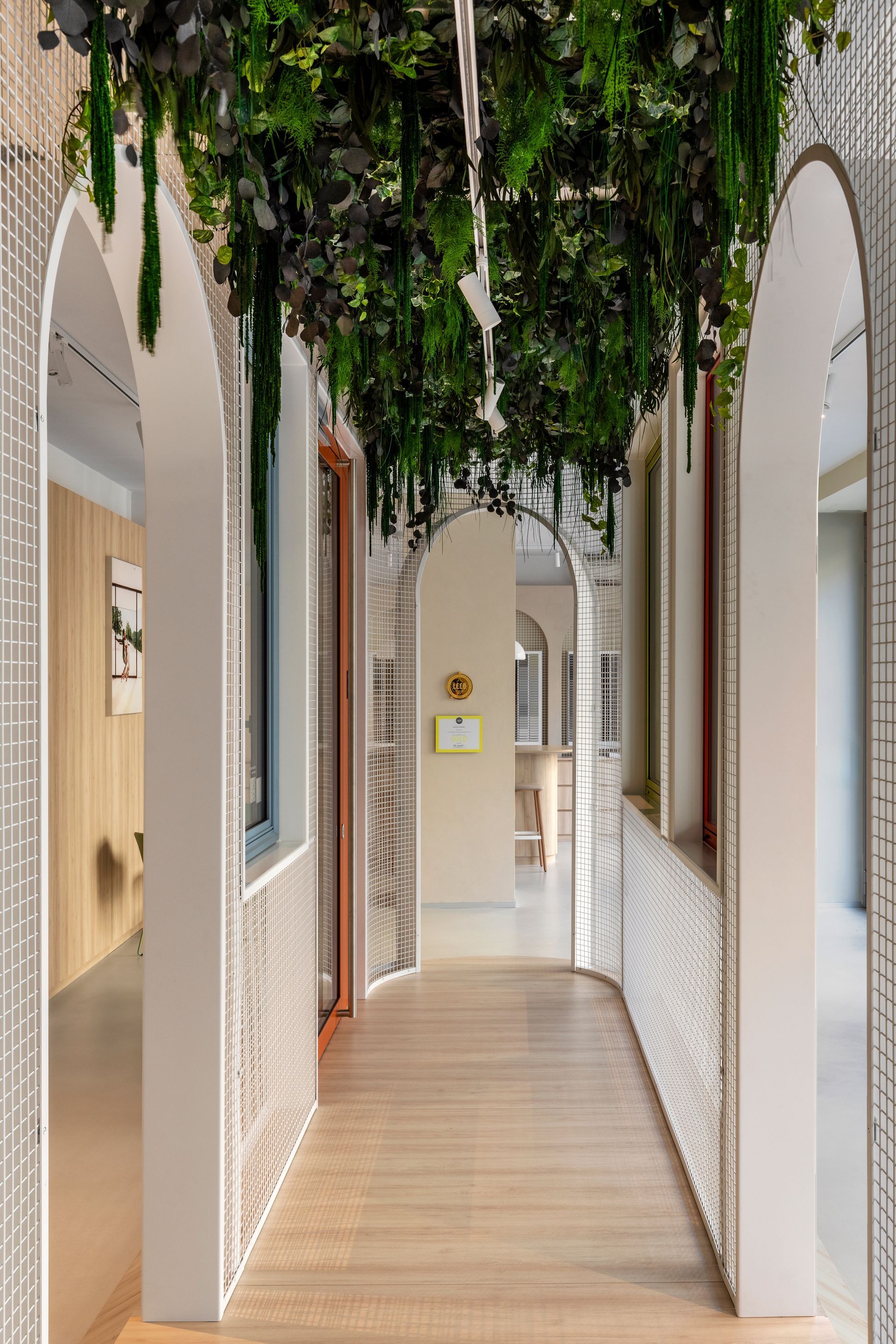 Among the most innovative solutions are the SOLEAL Next systems, made with 75% recycled materials and 95% recyclable, and the panoramic sliding doors. The presence of plants hanging from the ceiling in the exhibition tunnel symbolises the link with nature and creates a visual play between inside and outside.