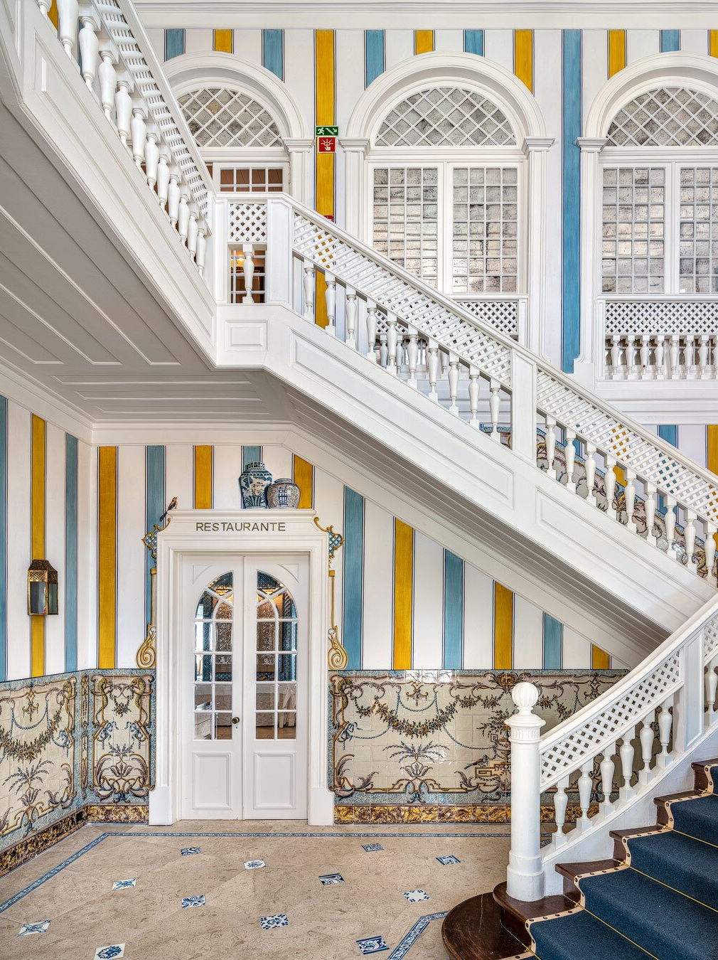 For the hotel’s grand opening in the 1940s, the space had been transformed from a private residence to an inn by the owners at the time. First built in the early 1900s for the Lancastre family, this grand residence of Italian architecture combines Moor, Neo-Gothic and Neo-Manueline motifs found throughout the space that, together with the sentry boxes in each corner of the house, give it a most peculiar and original look. For the new design concept, Viterbo Interior Design drew inspiration from the hotel’s rich history including testimonials found in the hotel’s first ever guest book, which was filled with notes from worldwide guests.