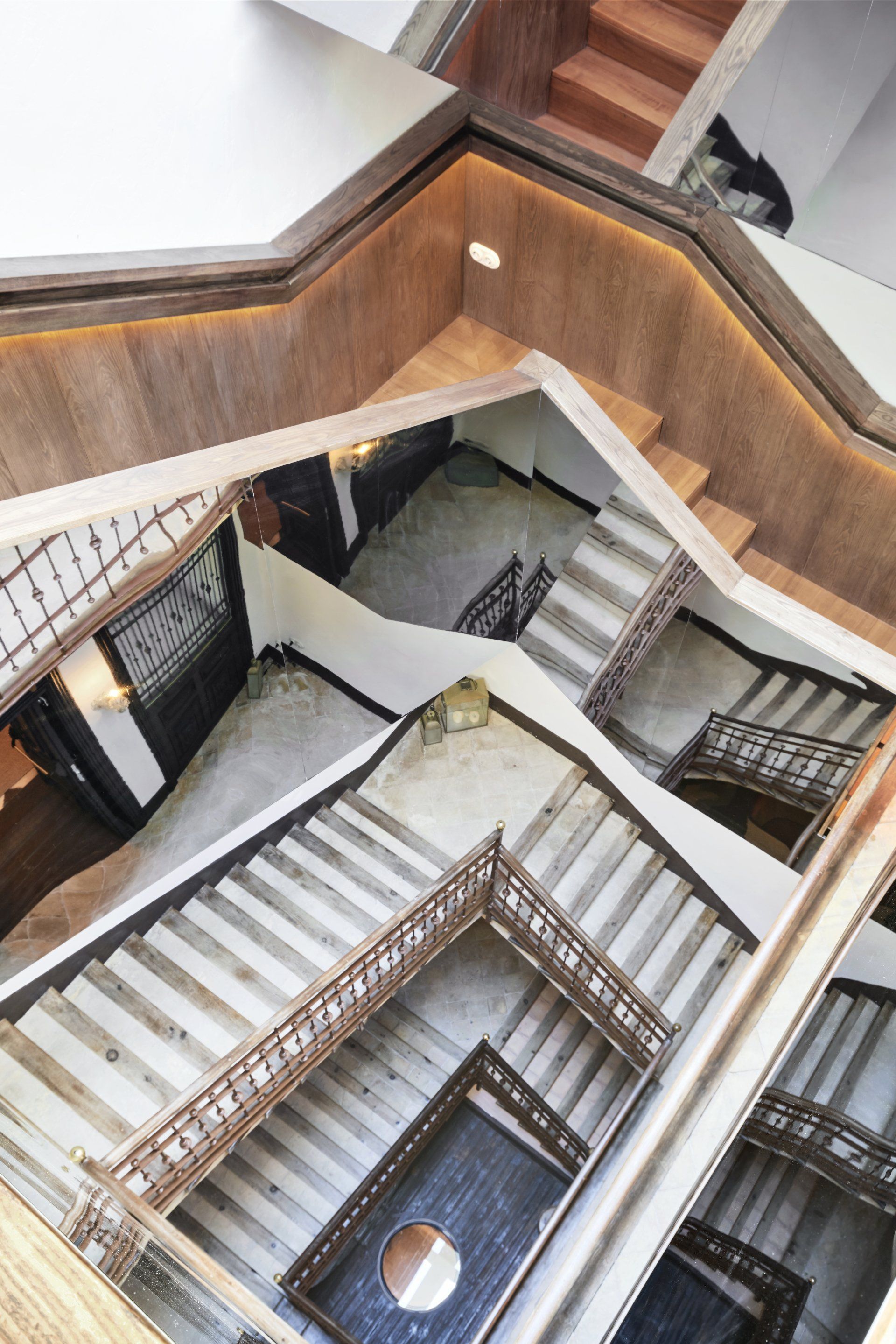 The OHLAB team was inspired by the principles of the traditional Japanese technique of Kintsugi - the art of repairing broken antique porcelain with a precious material, such as gold dust, and thus obtaining a repaired piece that does not hide the fracture, but shows it and celebrates it and whose result is a piece that may have even more value than the ceramic before breaking. The architects have sought a project that does not pretend to hide the heterodox eclecticism of the existing building, but instead conciliates and celebrates the different layers of history and clearly highlights the new interventions that have been necessary to give the house its new use.