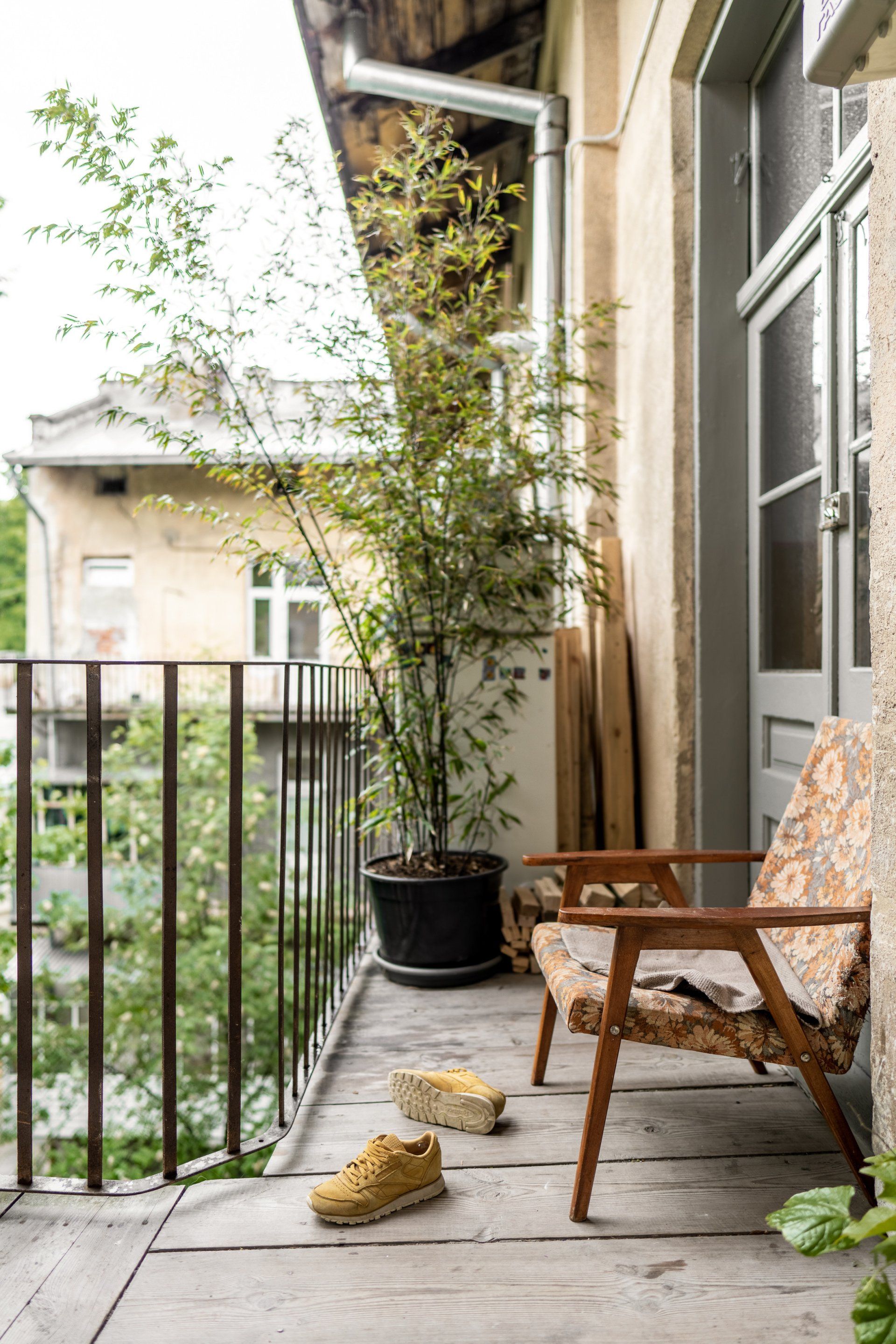 "Designing this space, we were trying to retain a certain ambience and spirit of an apartment in the historical centre of Lviv. We also wanted to accentuate a friendly neigh-bourhood environment in Lviv's typical courtyard where neighbours communicate from their balconies. As part of that concept, we replaced the windows that face the courtyard using large aluminium frames which open wide. The windows on the main façade were replicated according to an old technology using wood and original window fittings."