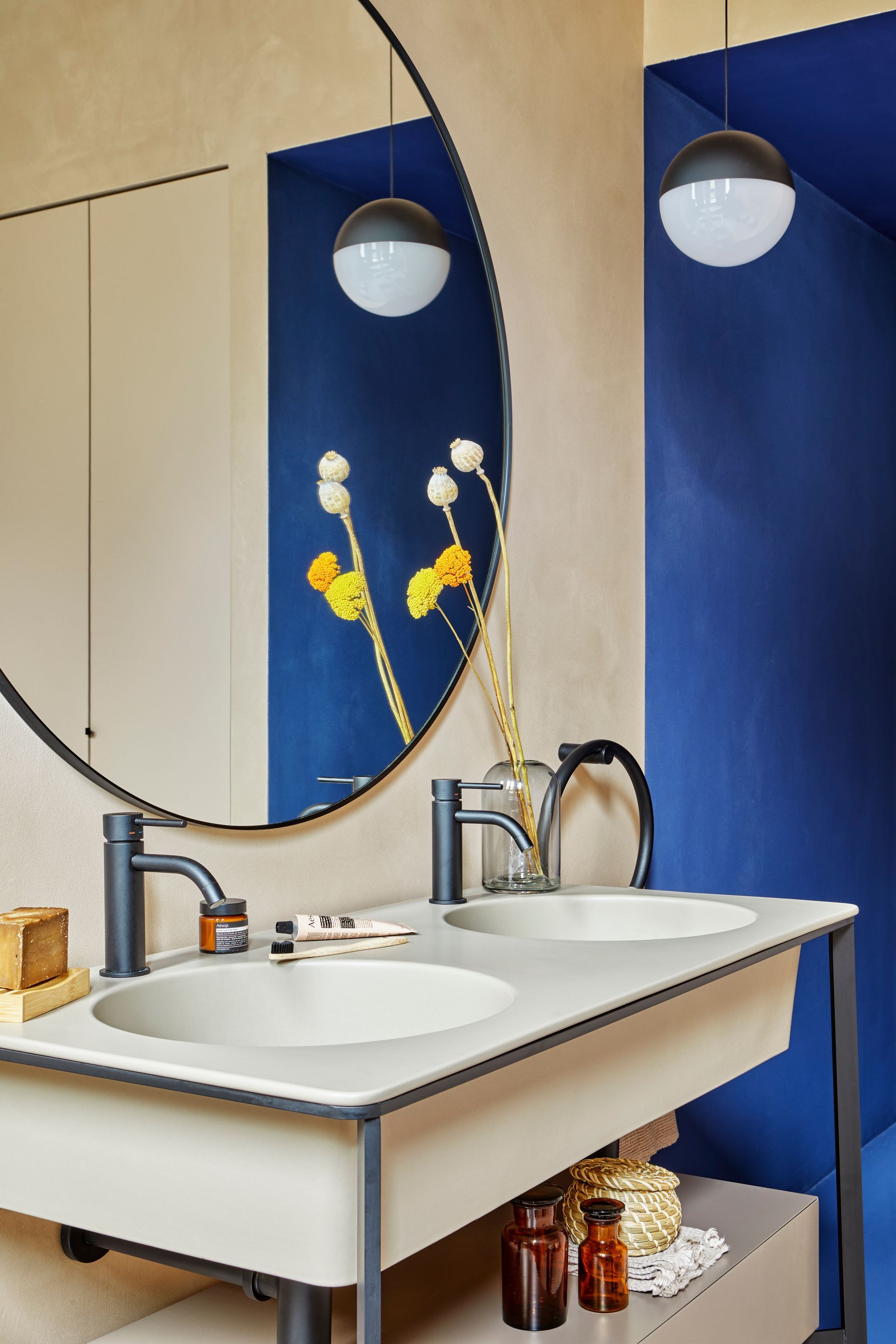 The IS product is a highly performing coating in terms of resistance and durability; it's convenient and extremely customisable, suitable for every room in the house and therefore incredibly versatile. This product was essential to reaching the creative goals of this project, and allowed us to sample the blue colour and achieve a sense of continuity between vertical and horizontal elements.