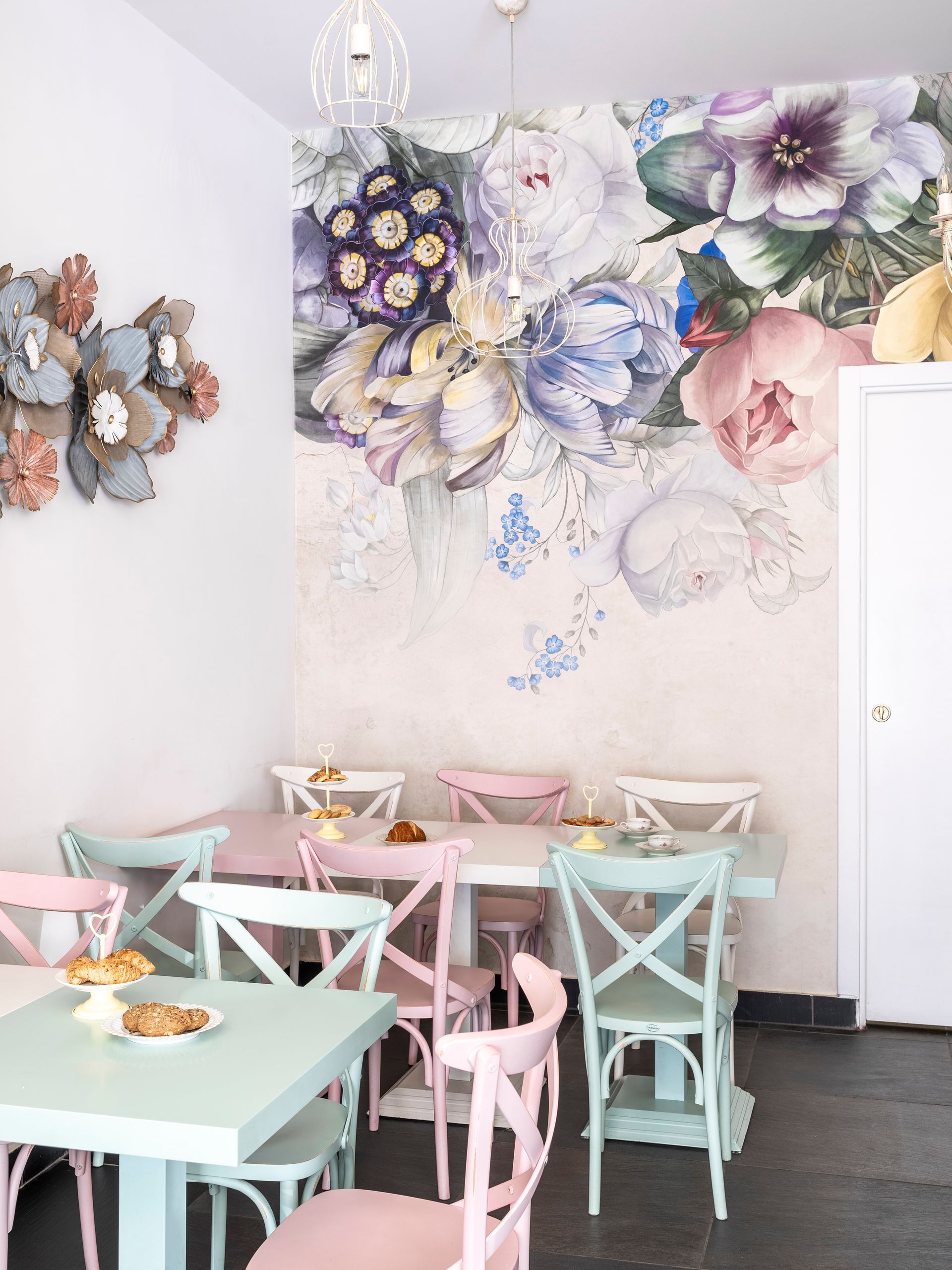 The inspiration for the interior design was the film Alice in Wonderland which the owner of the venue had long dreamed of bringing that fairytale spirit to the city. In fact, upon entering the bar, you can breathe in that fairytale atmosphere: an enchanted forest in which to relax while enjoying the wonderful homemade desserts made by the owner.