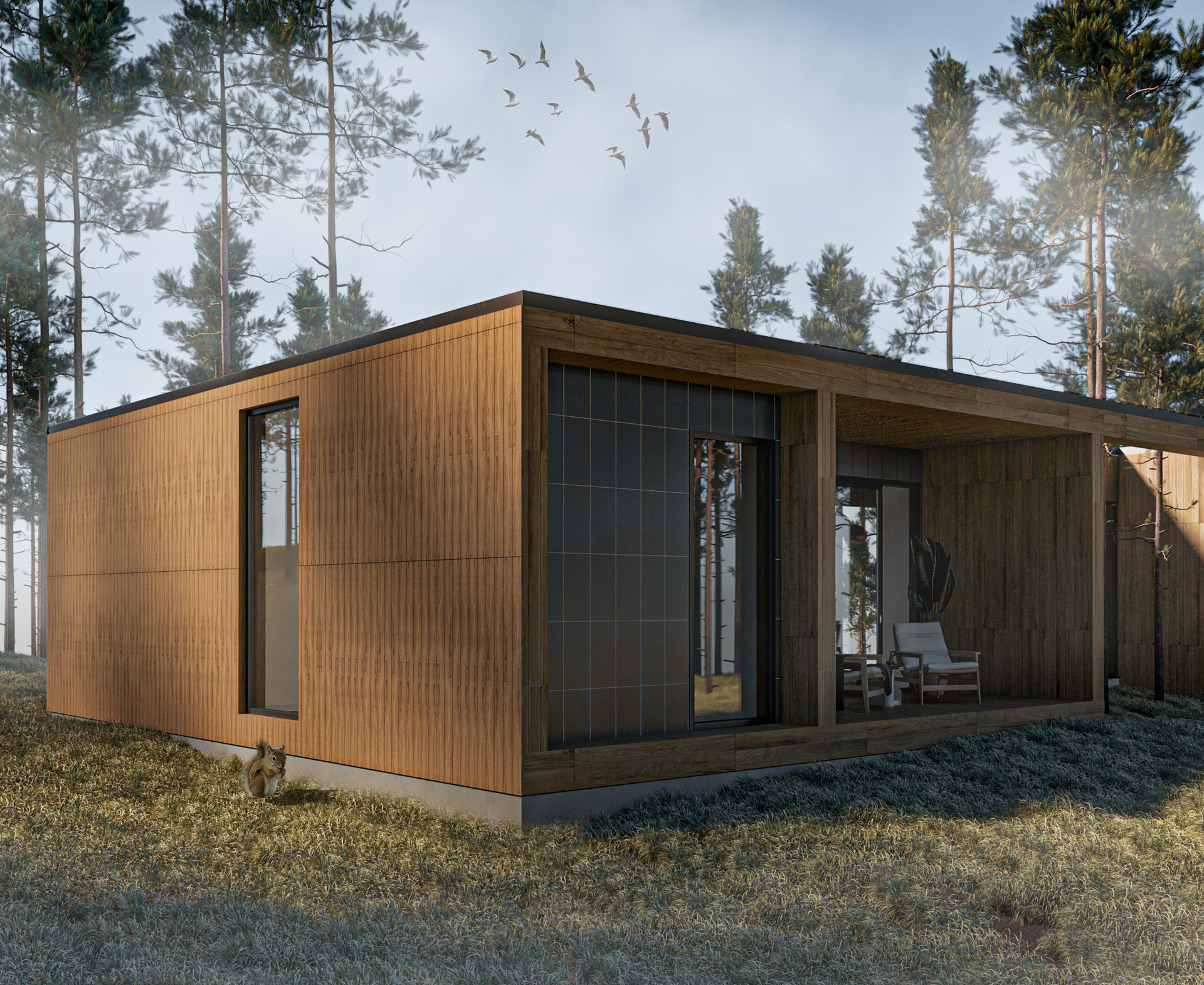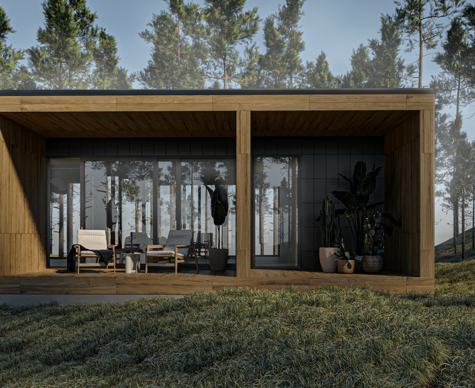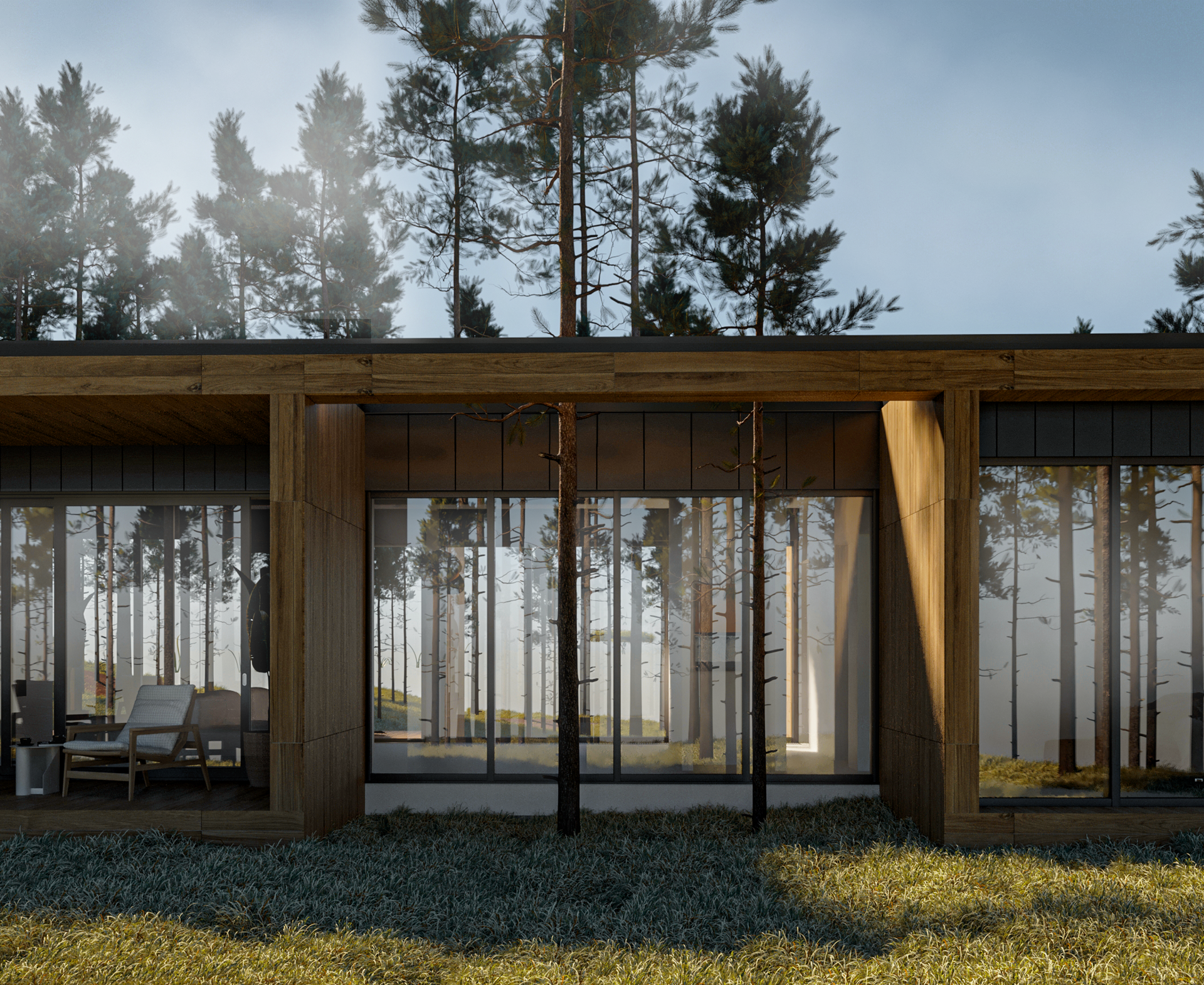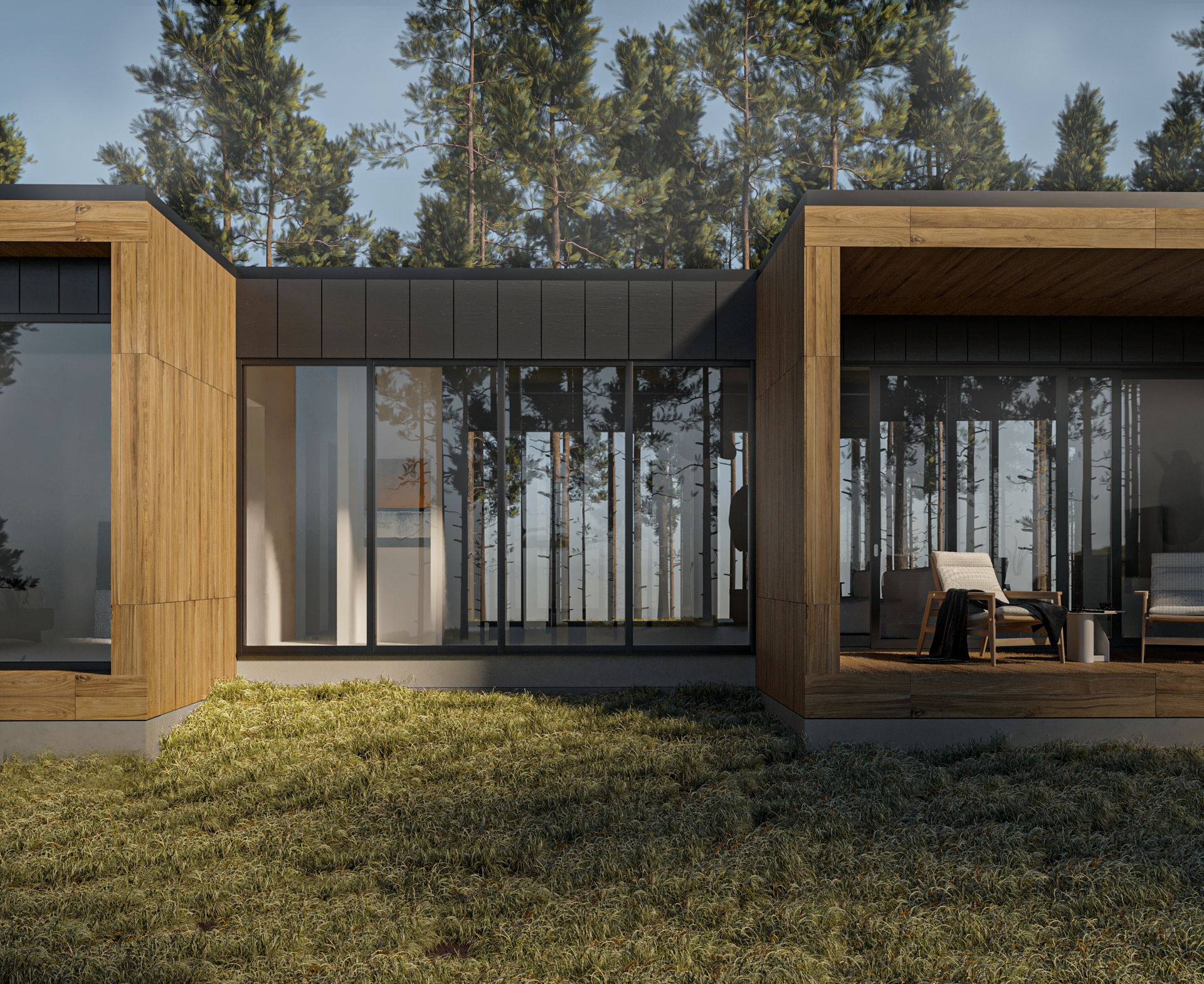 In addition to wood, the house will feature black metal and concrete elements that offer a harmonic symbiosis with nature. The large windows that tear off the horizon on four sides of the house will provide transparency, while still maintaining security and privacy. The combination of these elements would create a unique look perfect for the modern homeowner.