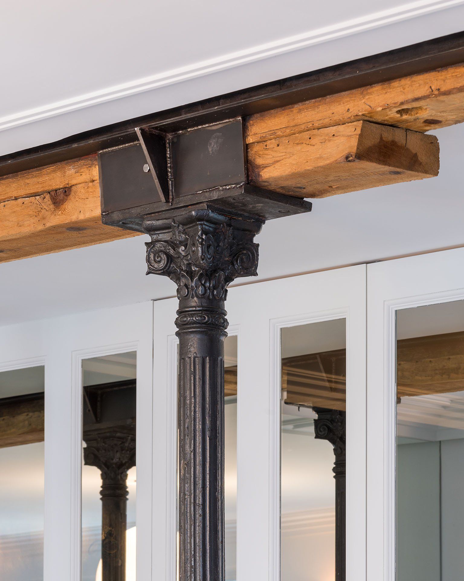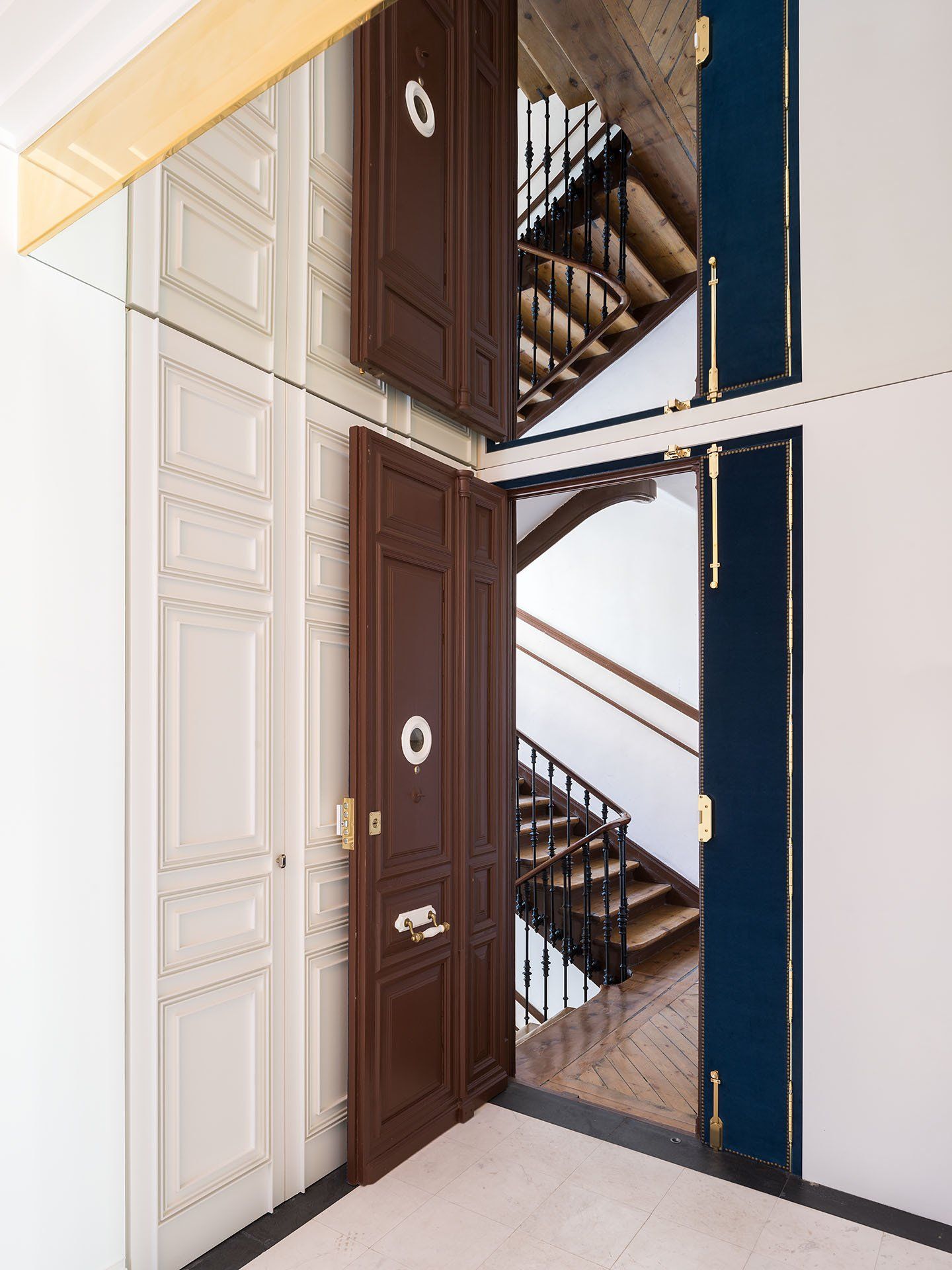 The design of the plurality of domestic spaces in the house has been carried out thanks to two distinct strategies. The first one reuses, benefits and reinterprets the most identifying elements of the house, such as the 22 existing doors, or the 955 slate and marble tiles present in the original pavements, which are classified as inventory. This meticulous and delicate work methodology allowed to clean, approach and discover the project, which facilitated its relocation, individually or assembled, in the floor of the new house, and thus gave it a second life. All those elements that couldn´t be preserved and recovered, such as moldings or fireplaces, were reinterpreted and built according to a contemporary language coherent with the house. For those other elements that were necessary but did not exist, such as the cabinet doors, certain existing decorative patterns were digitized and pantographed using a numerical control system, with indentations in a negative version to differentiate them from the originals, on new support materials.