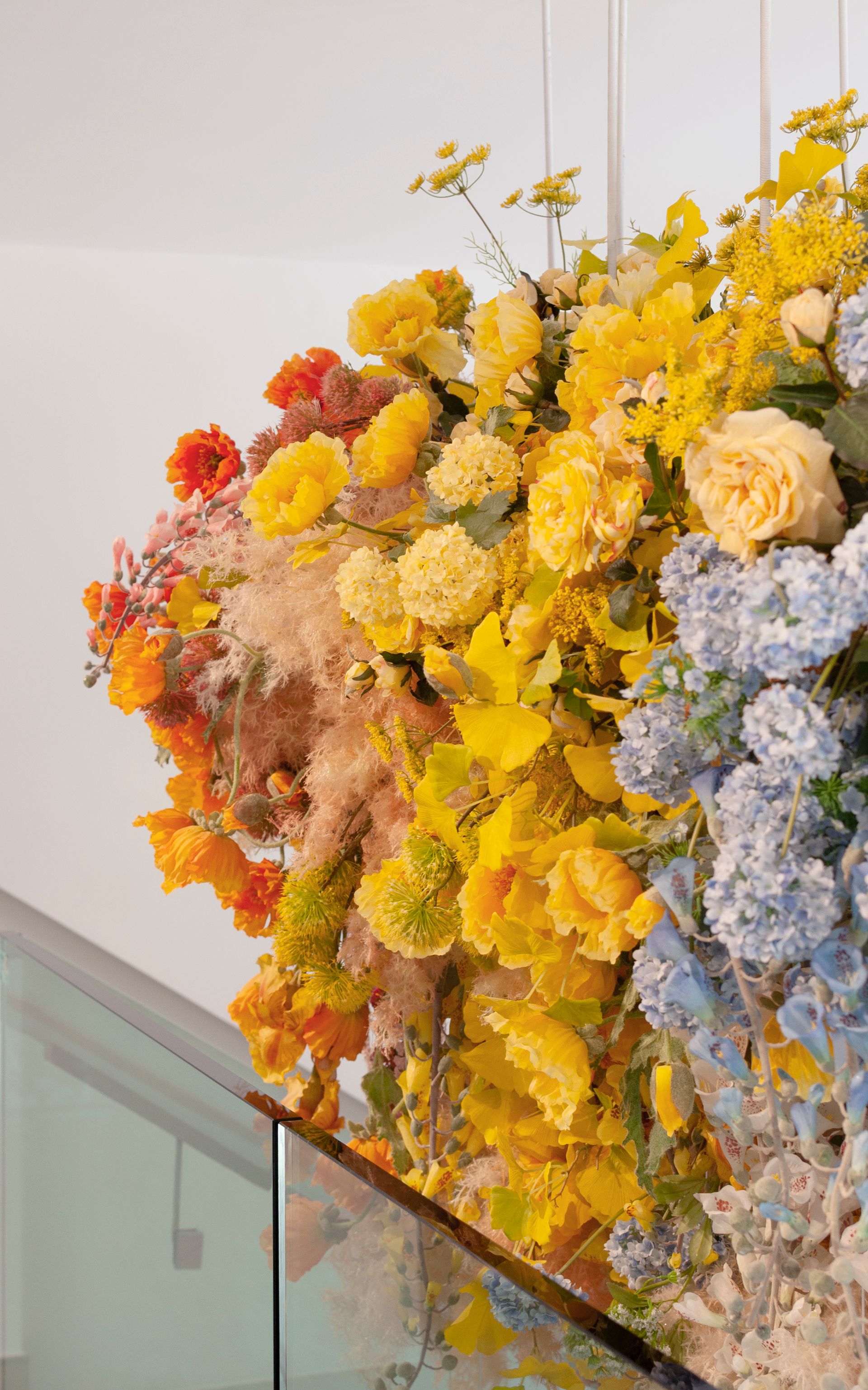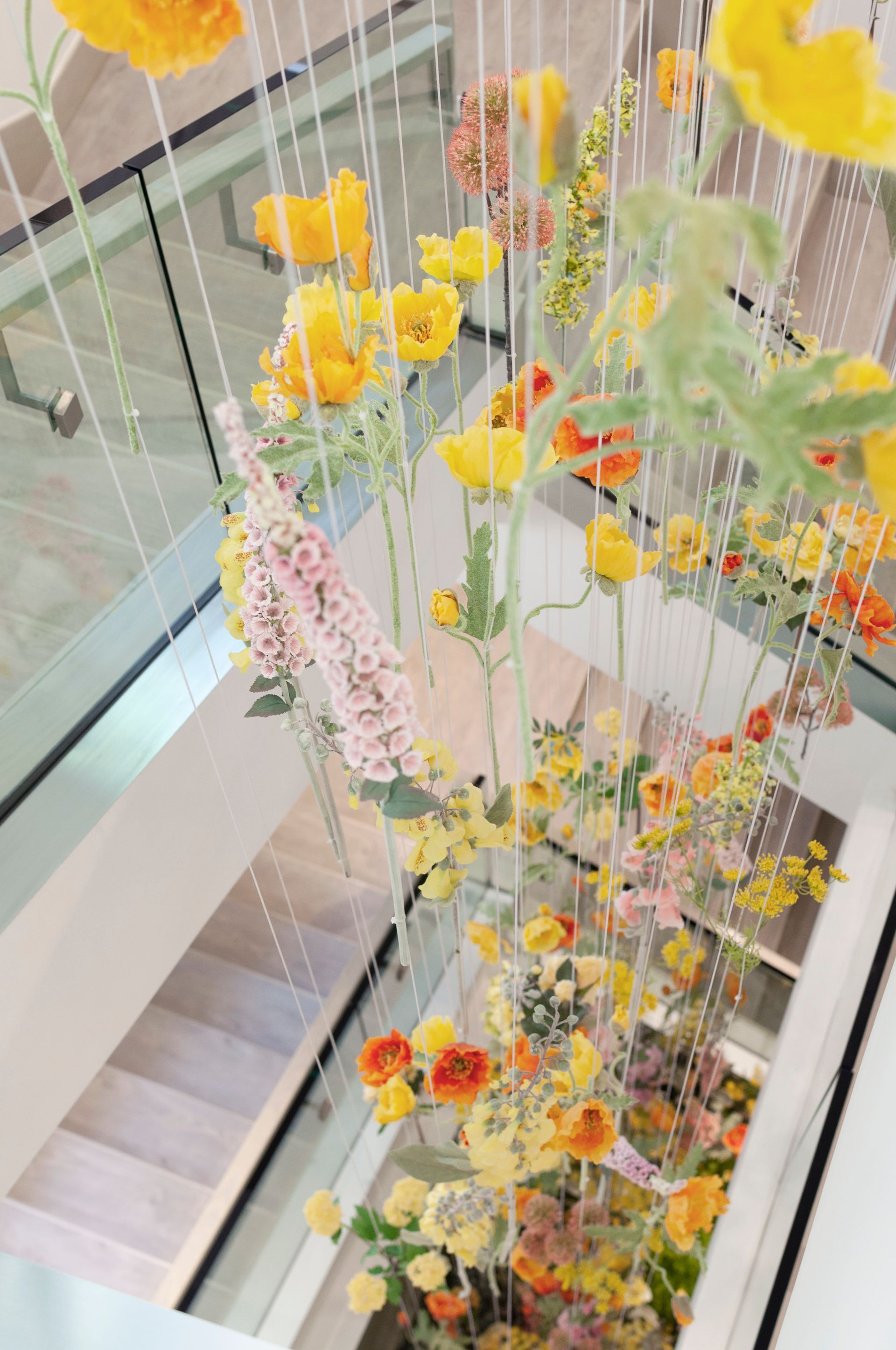 “The poetic narrative for this show apartment and sales gallery was inspired by well-being and Spanish gardens, with vertical floral arrangements on the building's facade and in the staircase atrium to entice visitors to explore the top floors of the building.”