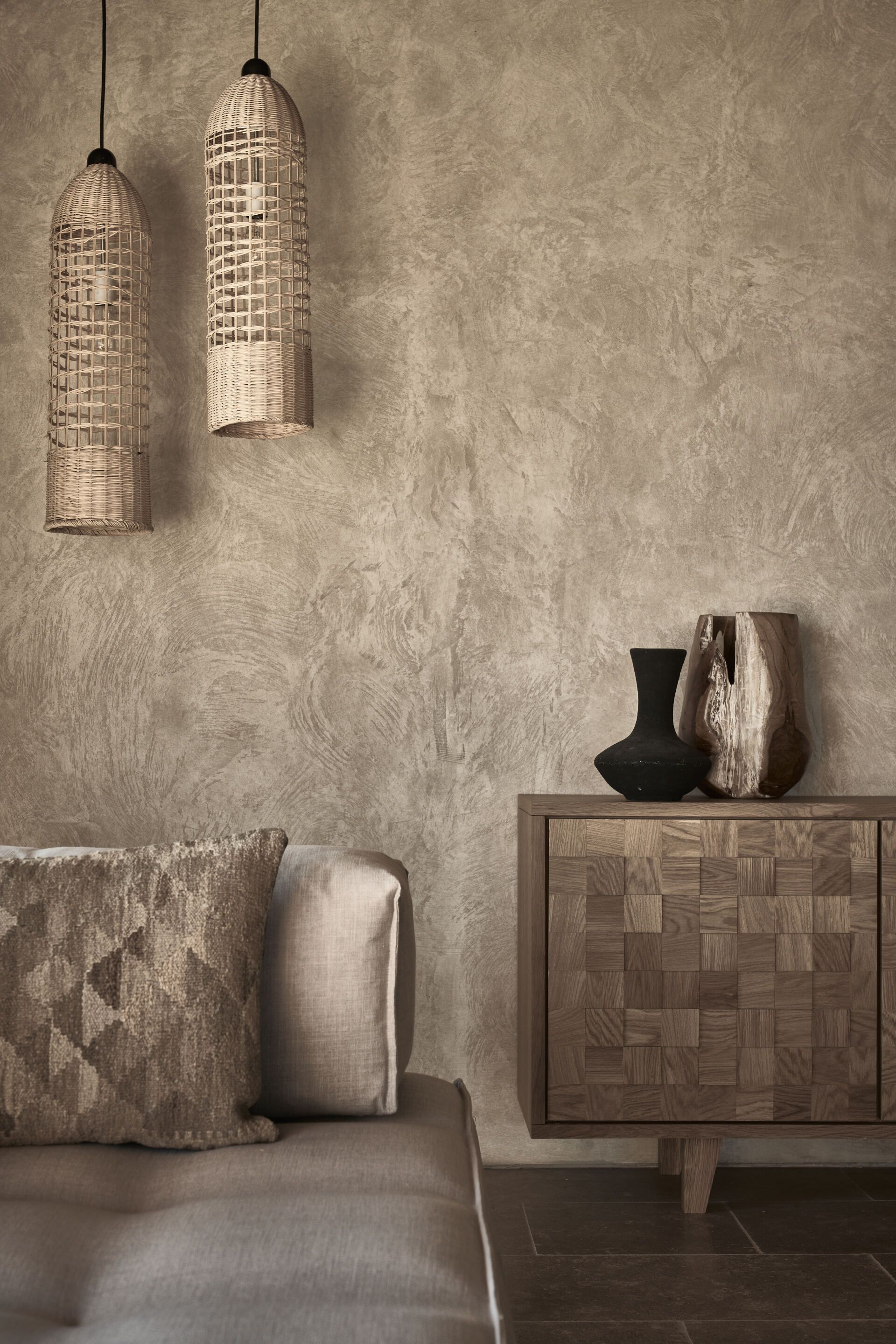 Block722architects+ worked closely with the existing vegetation — like the venerable olive trees that have been gracing this plot of land for centuries. Using natural materials (like rustic oak wood, bamboo, and rattan) and techniques, they redefined the physical environment while emphasizing the autonomy of each suite unit, with the result resembling more of a luxurious, tropical island settlement. “The most important thing to us was how the guests would experience their surroundings,” says Katja Margaritoglou, co-founder and interior designer for the firm. “The design aims to bring guests in sync with nature and its elements, connecting the indoors with the outdoors in a seamless way that helps them unwind and explore the resort in its entirety.”