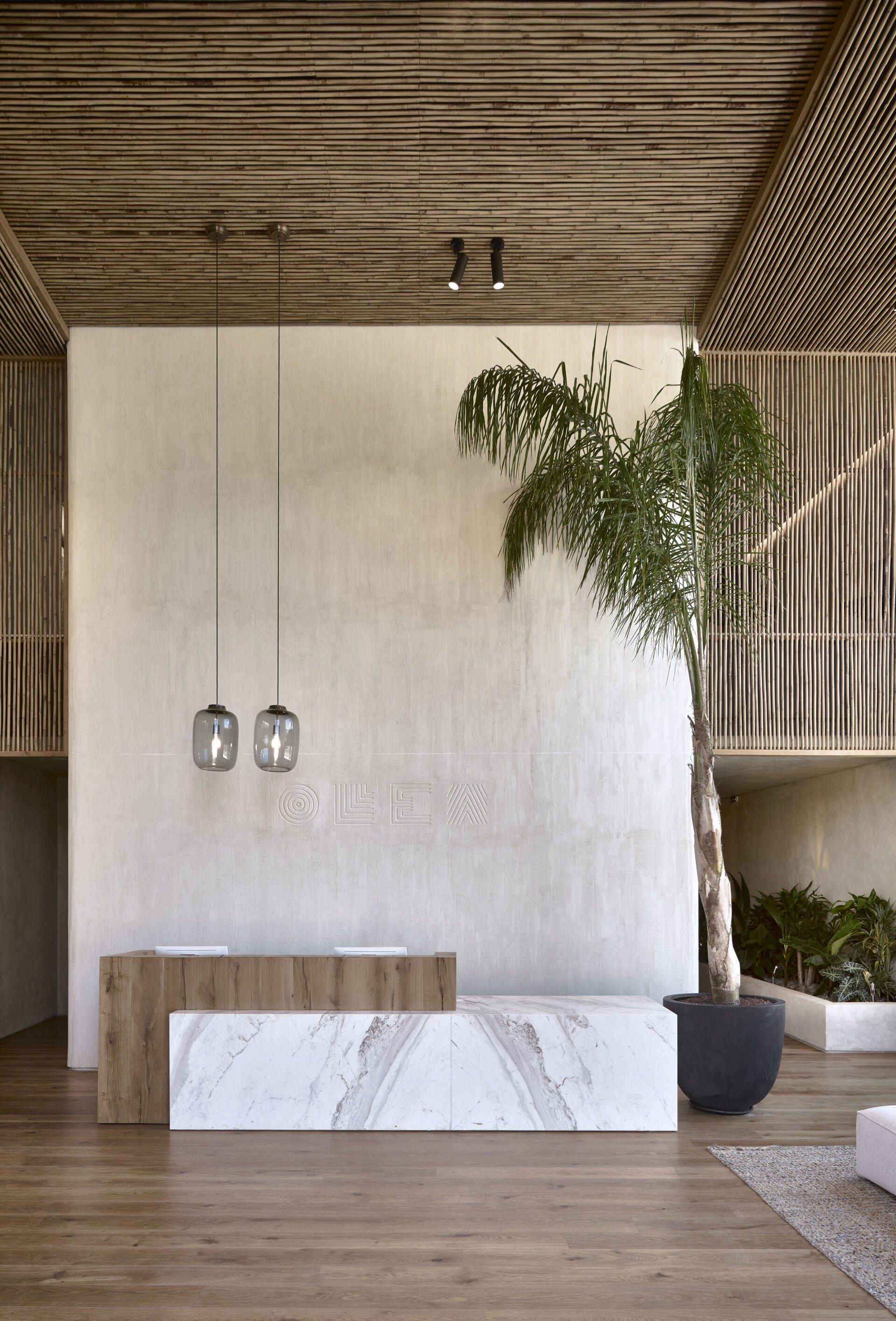 At the center of it all, functioning as the tranquil heart of the hotel is a 4000 sq.m man-made lake with suites and hotel facilities developing naturally around it. Α calming, transforming power of water flows freely through the veins of the Olea All Suite Hotel. The complete absence of boundaries between the resort's suites and the communal spaces cultivates a unique sense of freedom and mindfulness resembling the deep state of relaxation one feels when floating.