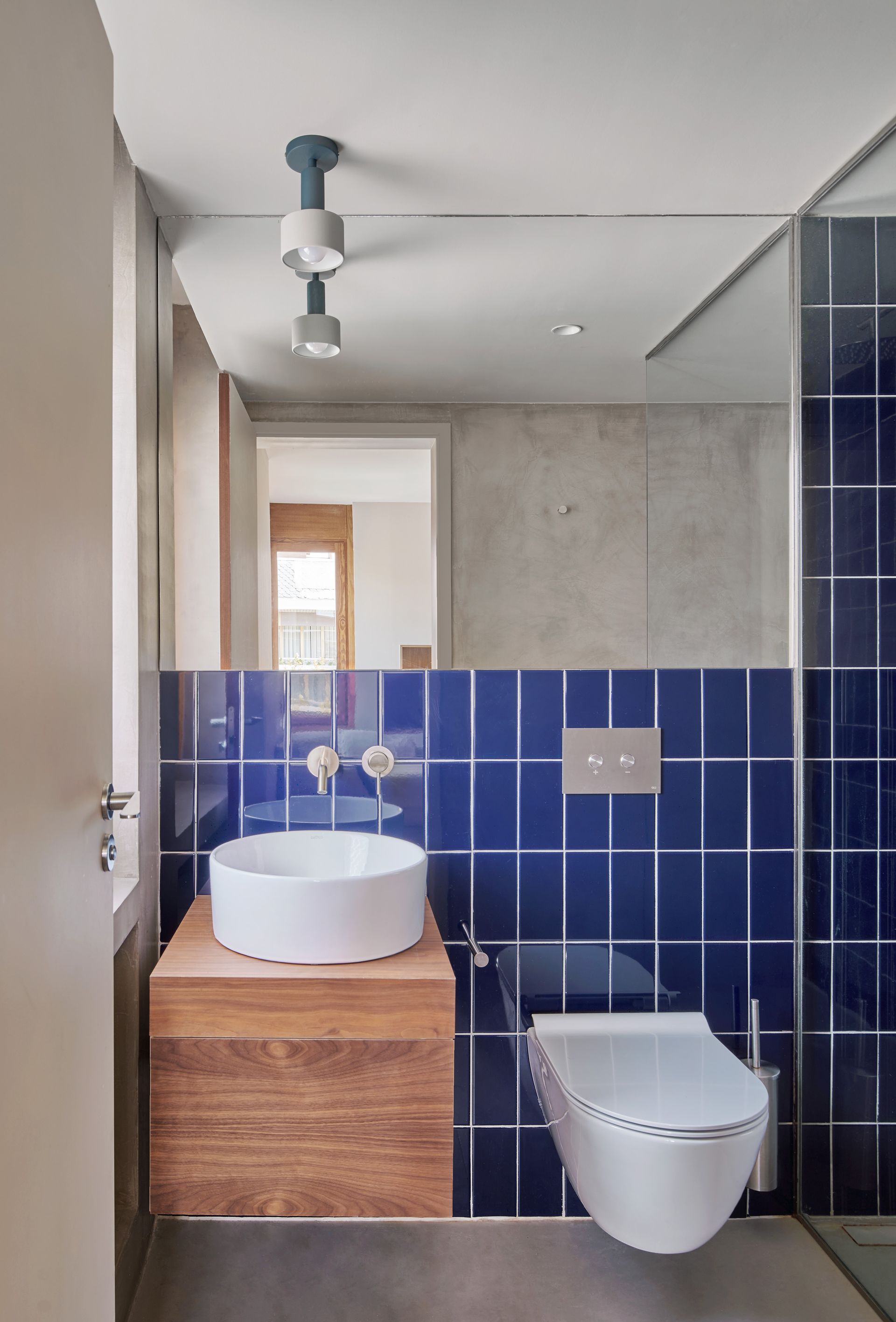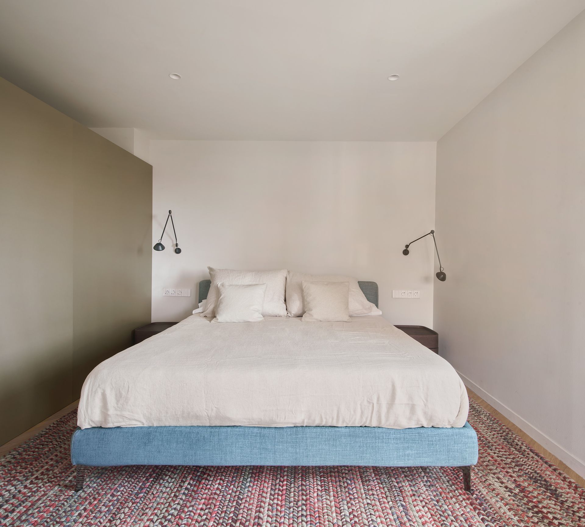 A mixture of dusty toned-down palettes splashed with bright bold colored elements replicates itself throughout the apartment, in search of a balanced, urban aesthetic in tune with the clients’ personality.