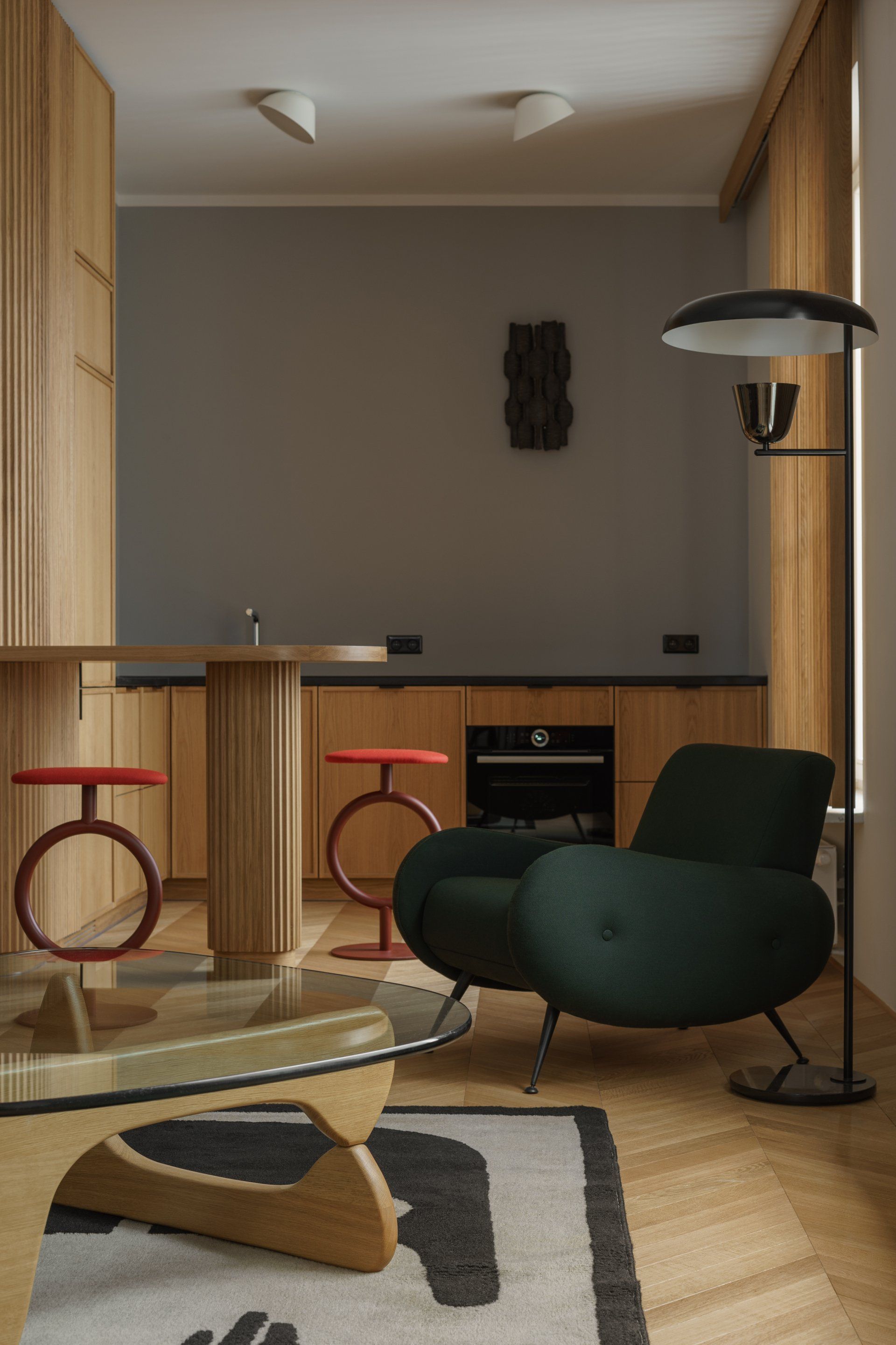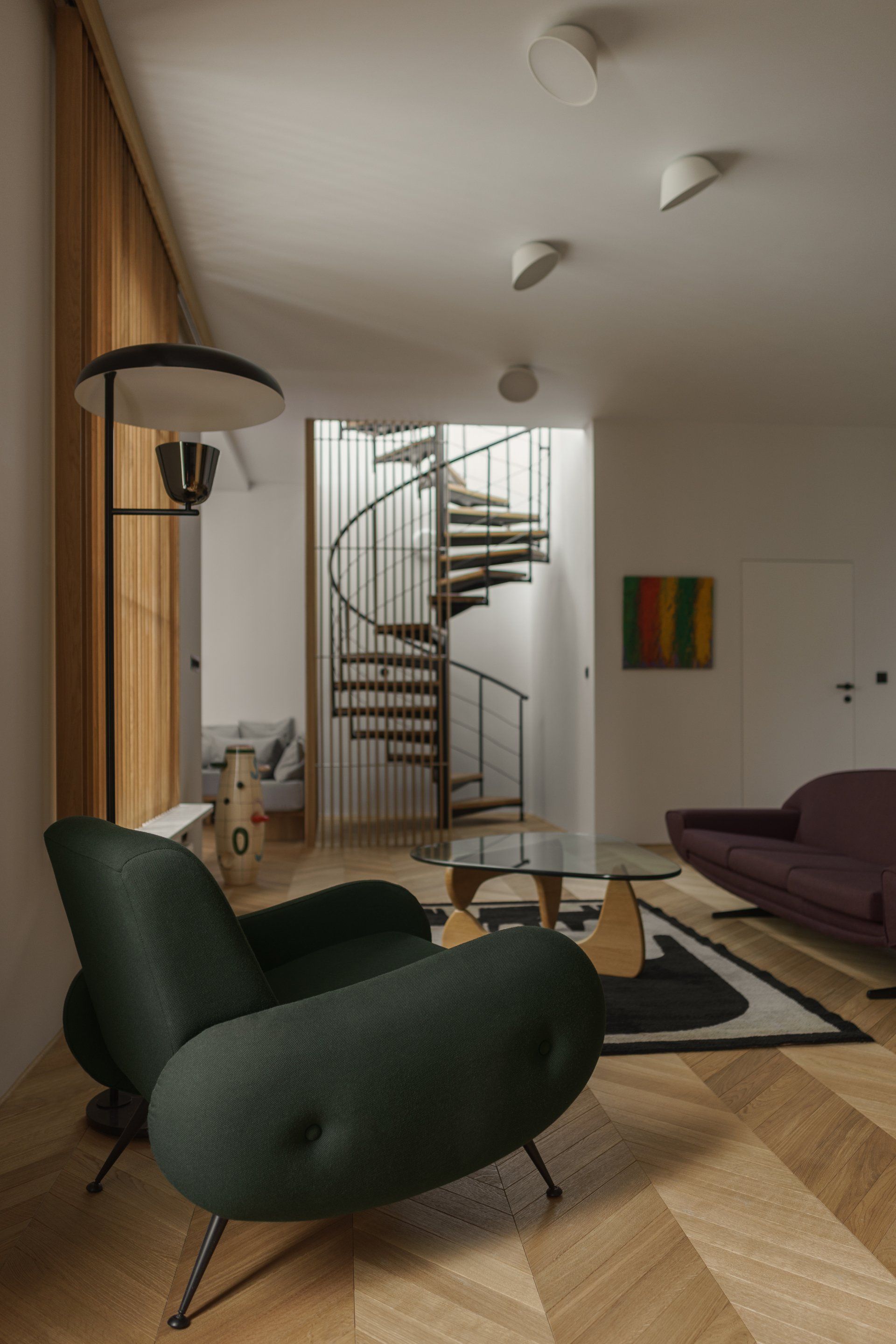 In addition, the project includes classic furniture, lighting and accessories from artists such as Isamu Noguchi, Carlo Hauner, Johannes Andersen, Kai Winding, Edmund Homa, Verner Panton, Aksel Bender Madsen, Overgaard & Dyrman and Patricia Urquiola. The interior is accessorised with paintings, graphics, sculptures and ceramics (Igor Mitoraj, Leon Tarasewicz, Aleksandra Mysiorska, Bartosz Kosowski, Michael White, Antoni Janusz Pastwa, Robert Maciejko, Malwina Konopacka).