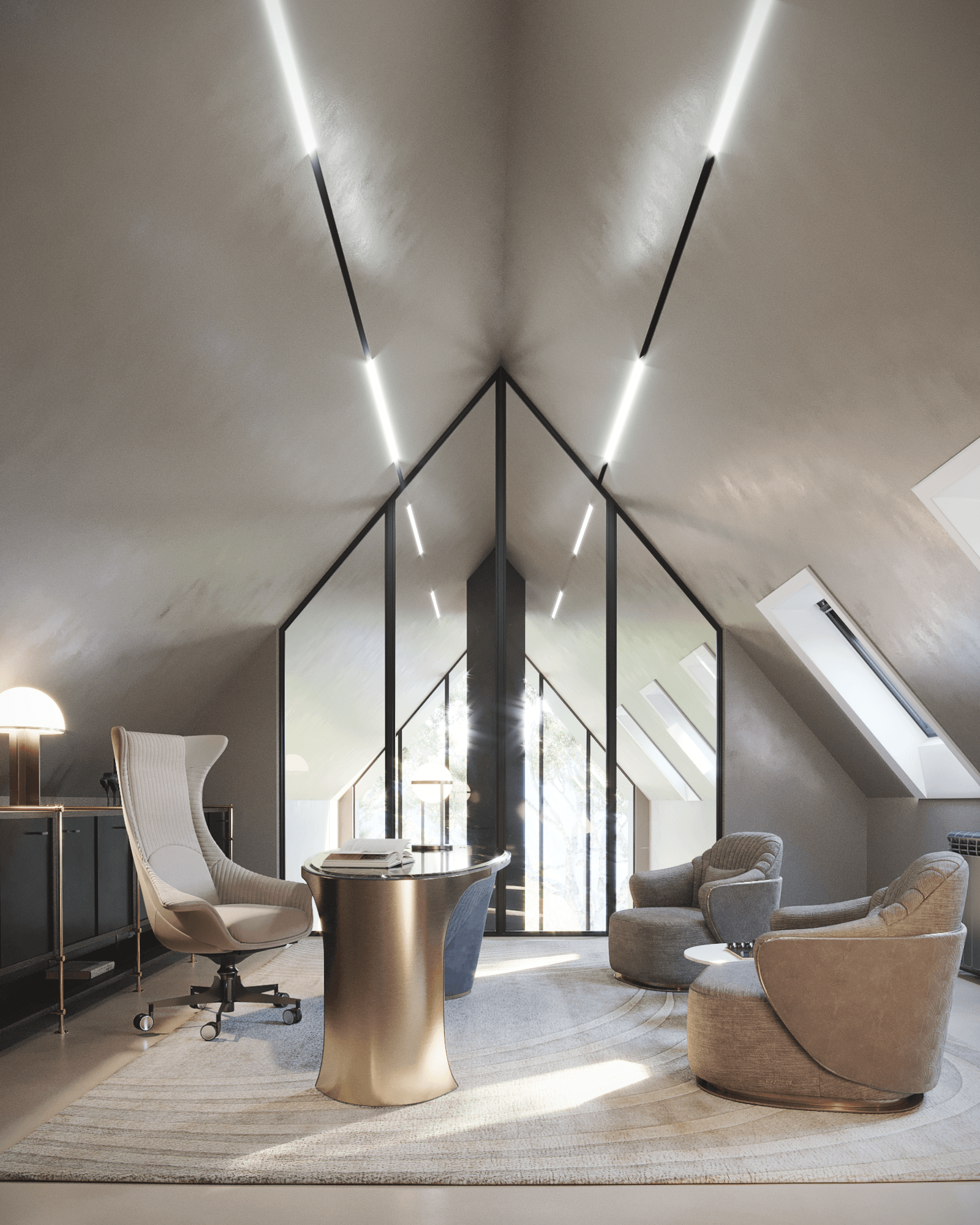 It all started with the poetically modern building idealised by the architectural team. A curvy and artsy language was developed to meet the client requirements. In the same time, the interior design project was designed to be the perfect fusion between art, culture, comfort and functionality.
