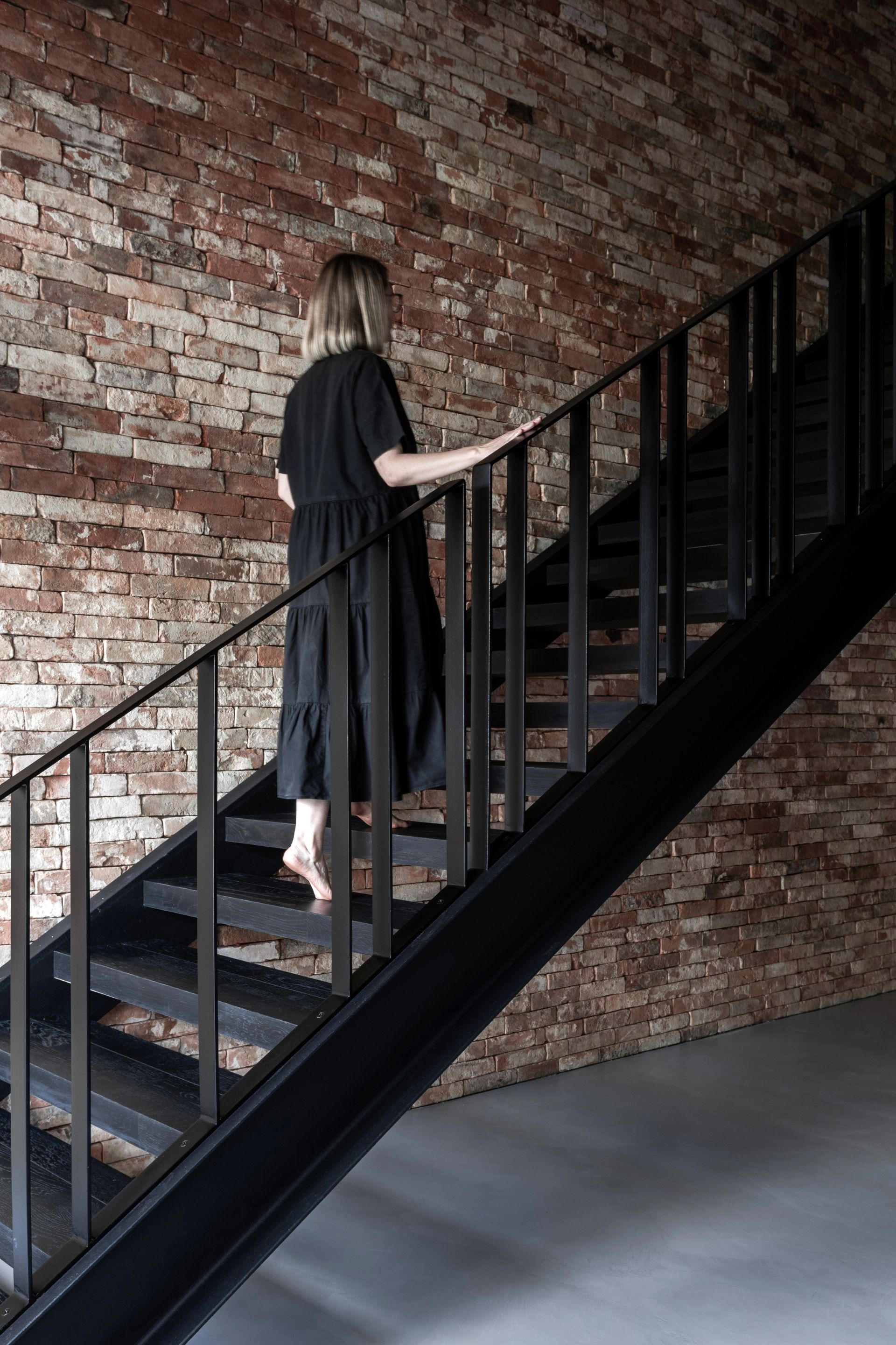 Led by Dmitry Petrov, the interior design studio l i n e a r c h i t e c t s projected a two-storey apartment in Chisinau characterised by use of brick, concrete, wood and glass.