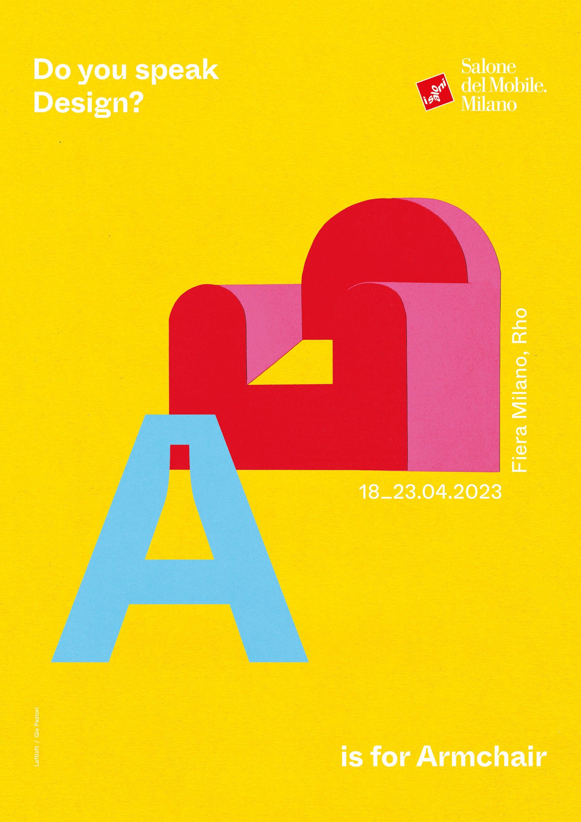 The new design alphabet consists of 26 brightly coloured posters: one for each letter of the alphabet, each featuring an archetypally-shaped furnishing piece, narrating the Salone and the objects around which the international design system evolved.