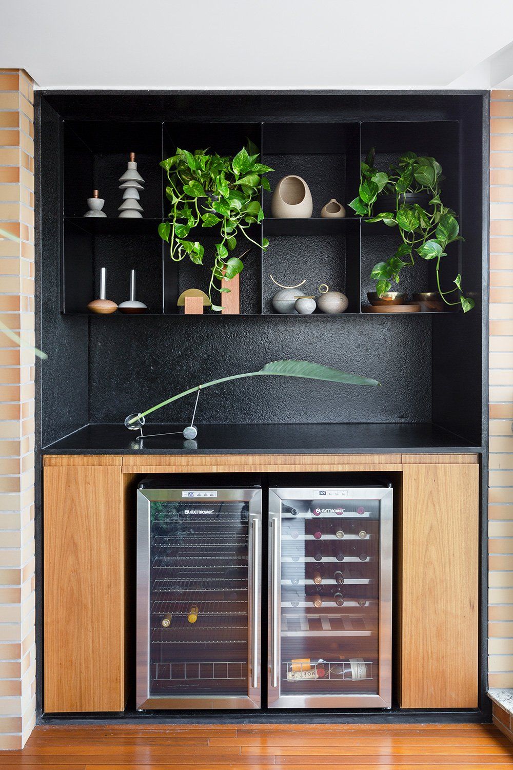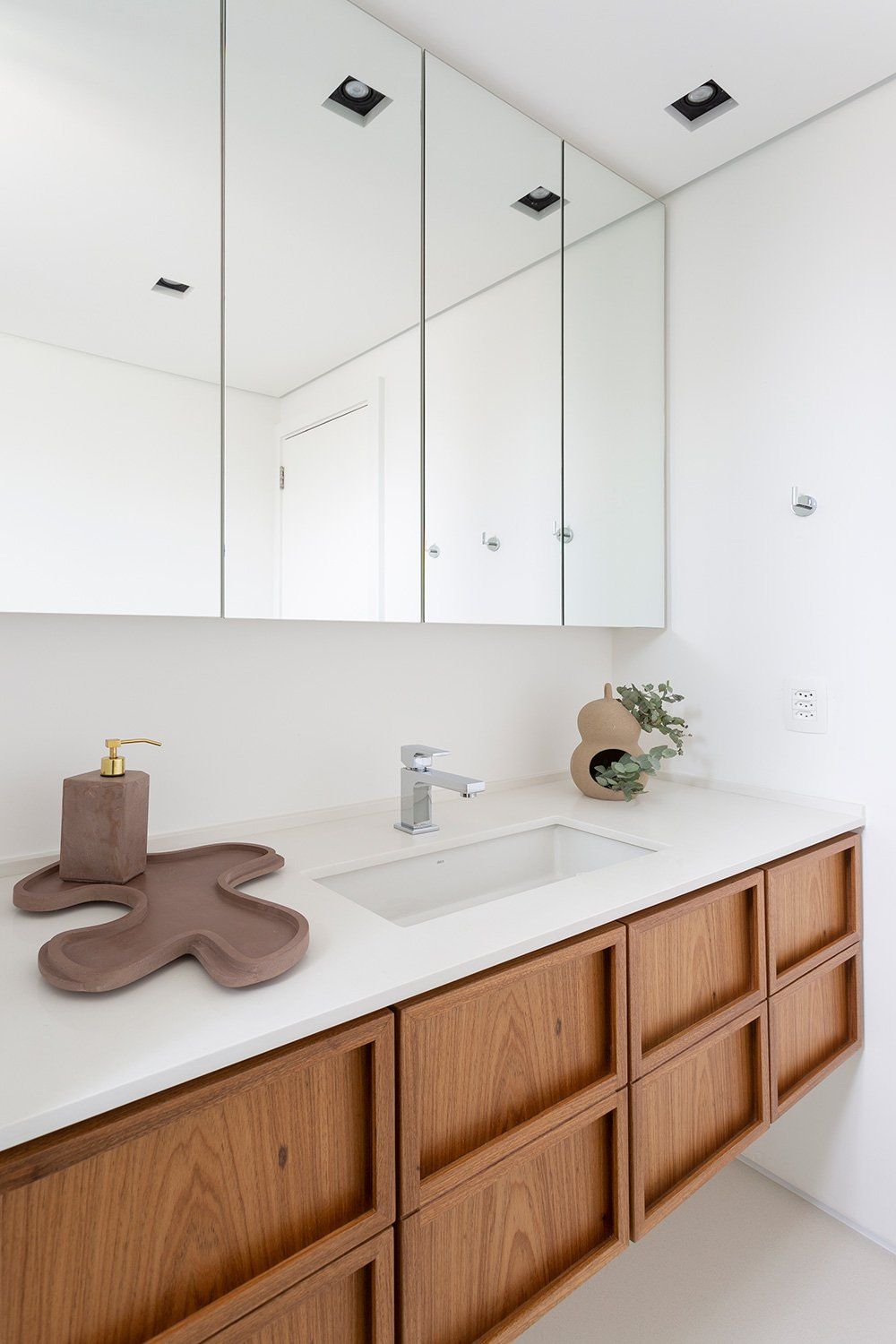 “We have transformed the apartment into an urban haven. We have chosen not to integrate the internal and external areas. Therefore, we have explored the balcony with elements from the outside area, creating an atmosphere with freshness and elegance. The memory of this space has started to permeate the entire apartment."