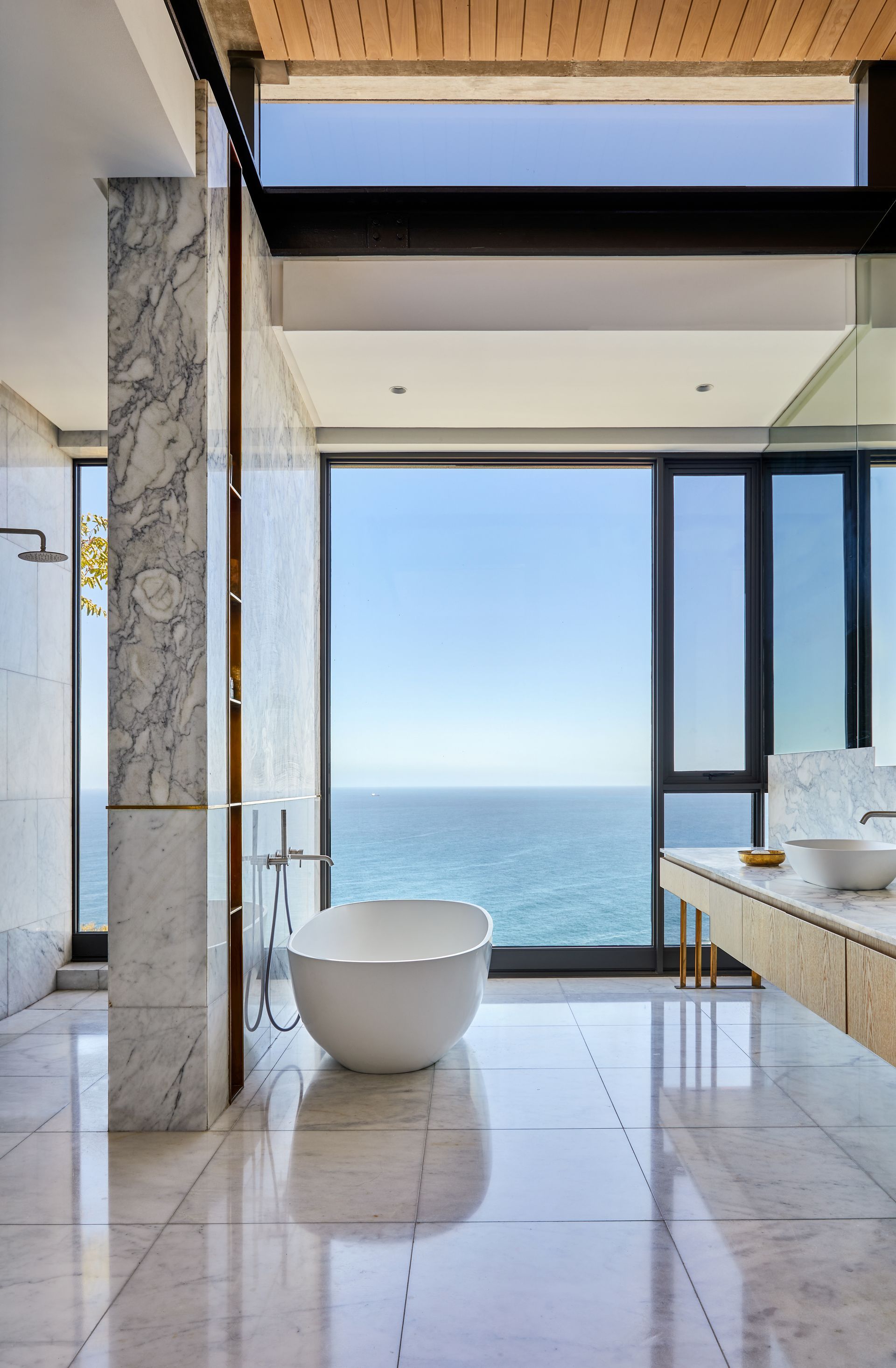 Featuring a new undulating concrete roof, the re-envisioned house by renowned studio ARRCC offers interiors with a fluid, open-plan layout that connects the gardens and terraces to panoramic views of Cape Town's Atlantic Seaboard.