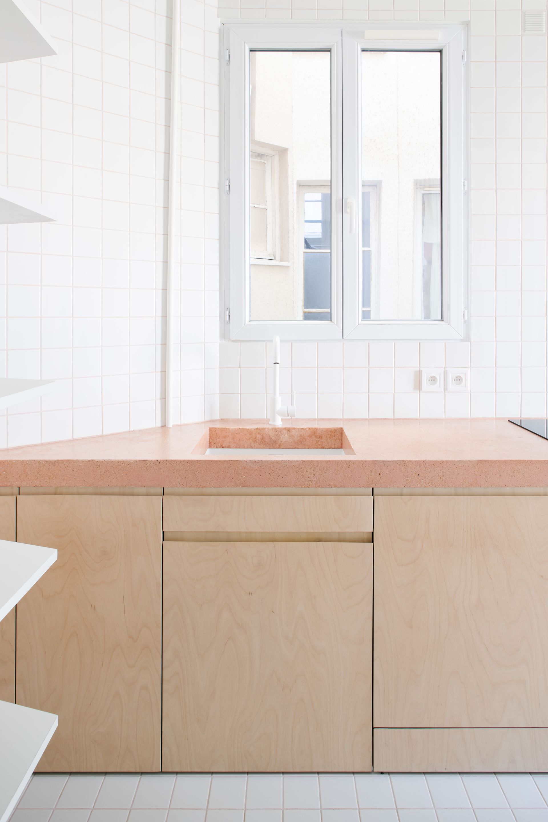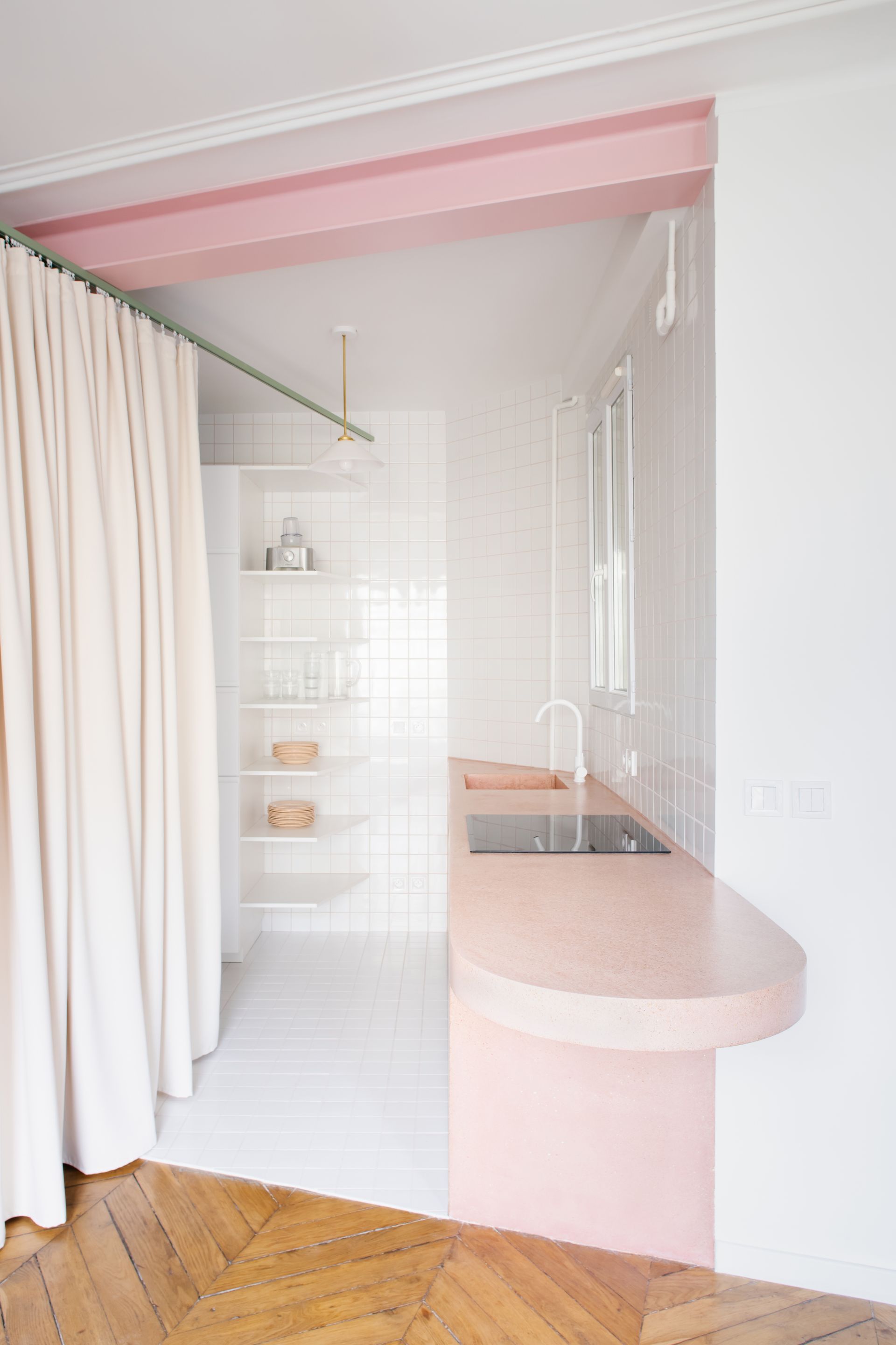 The French architectural studio miogui designed a 59 m² apartment adaptating the space to the life change of its owners, like the arrival of a baby.