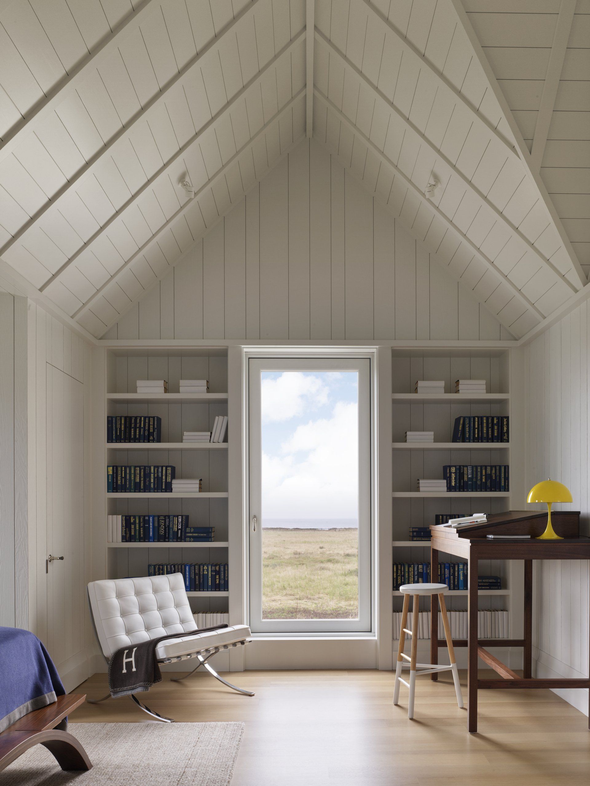 The expansive vista of wildflower-laden bluffs with the ocean beyond provided a dynamic setting to create a home for a couple with nostalgic connections to their East Coast roots and a newfound desire to embrace more contemporary and minimalist ways of living.