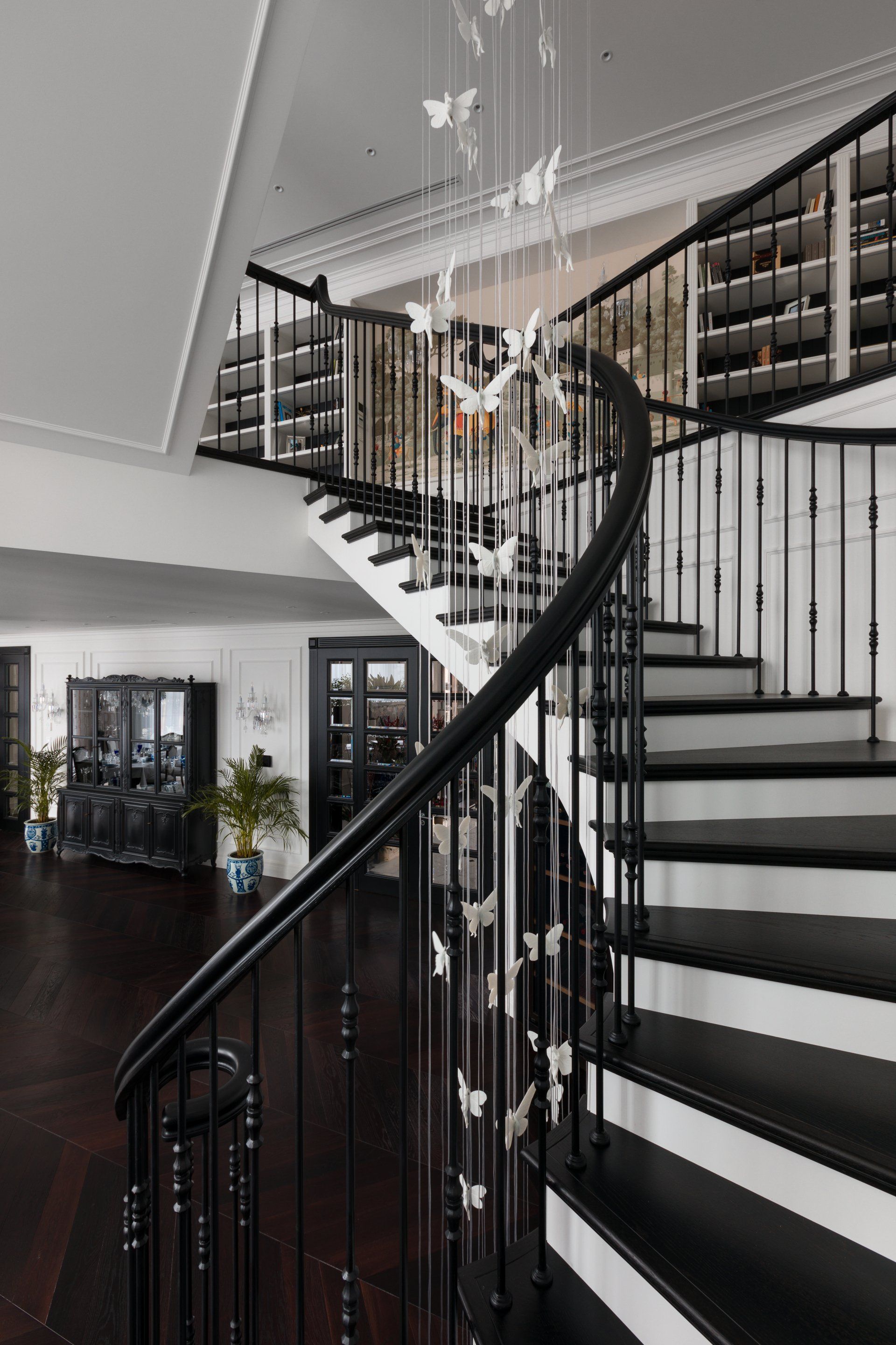 Incorporating distinct style elements important to the client, Bolshakova designed a home that feels classic, yet functional, and undoubtedly sleek. Taking inspiration from French and American interiors, such as the personal homes of Christian Dior and Ralph Lauren, in addition to influences from the Four Seasons Hotel designed by Pierre-Yves Rochon, the interiors were radically overhauled, from staircases to windows, flooring to façades. The living room celebrates a stunning reconstructed staircase, while décor details nod to the most bespoke of luxury interiors. The crystal chandelier celebrates the remarkably high ceilings, which warranted a full reinforcement to support the 150kg chandelier piece, and the light-flooded space boasts ample room for lounging or entertaining.