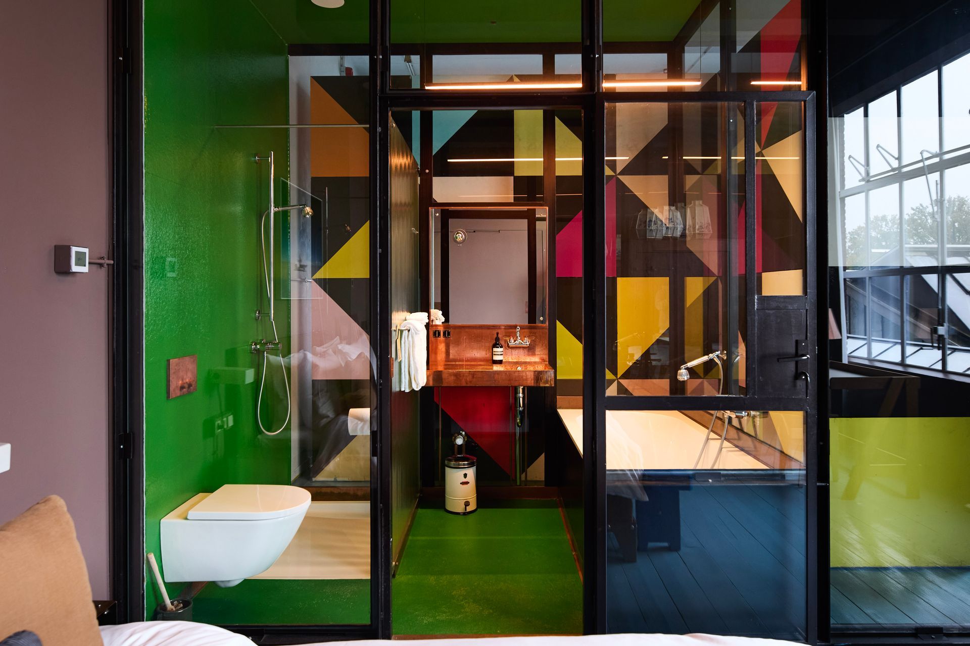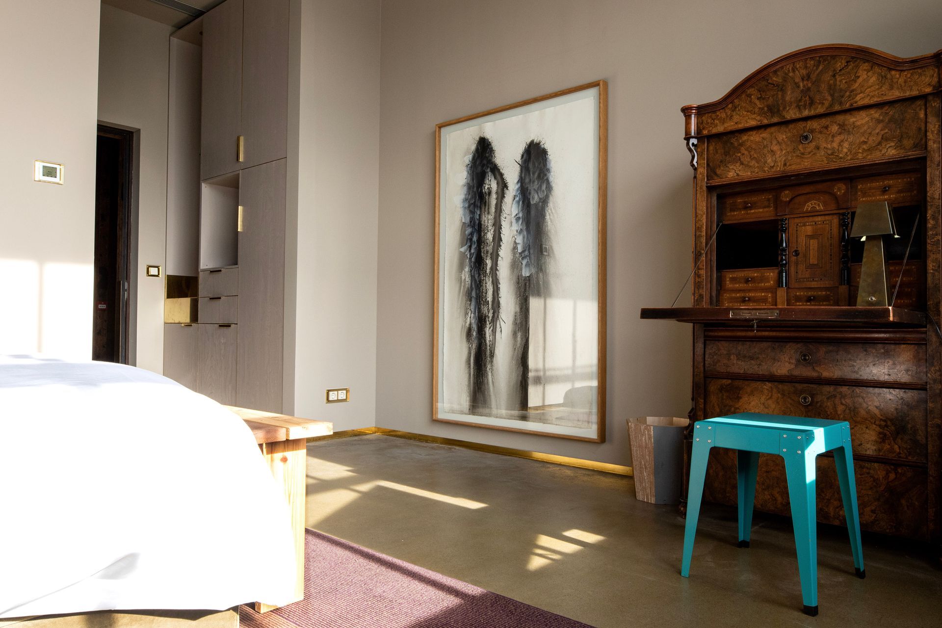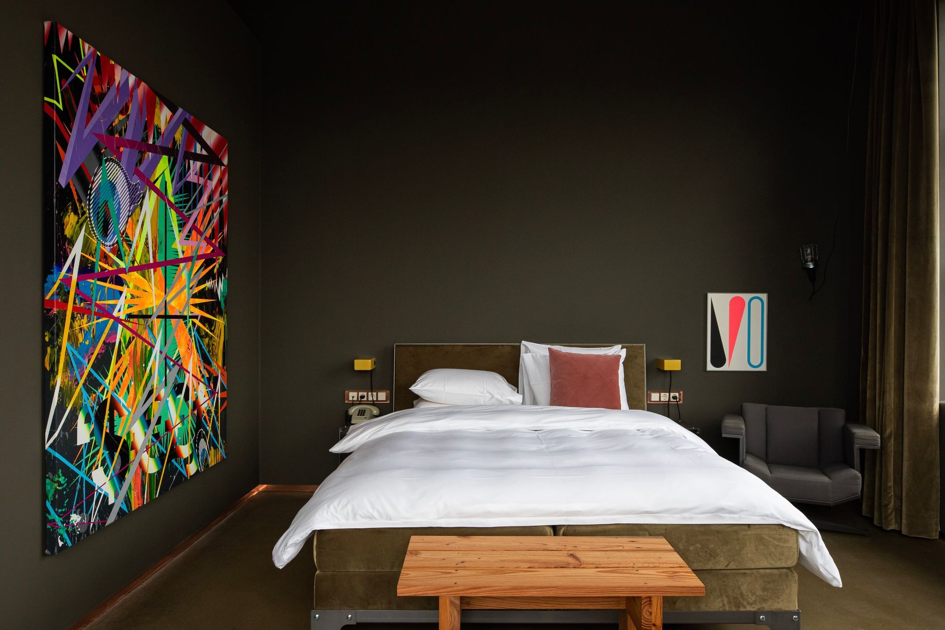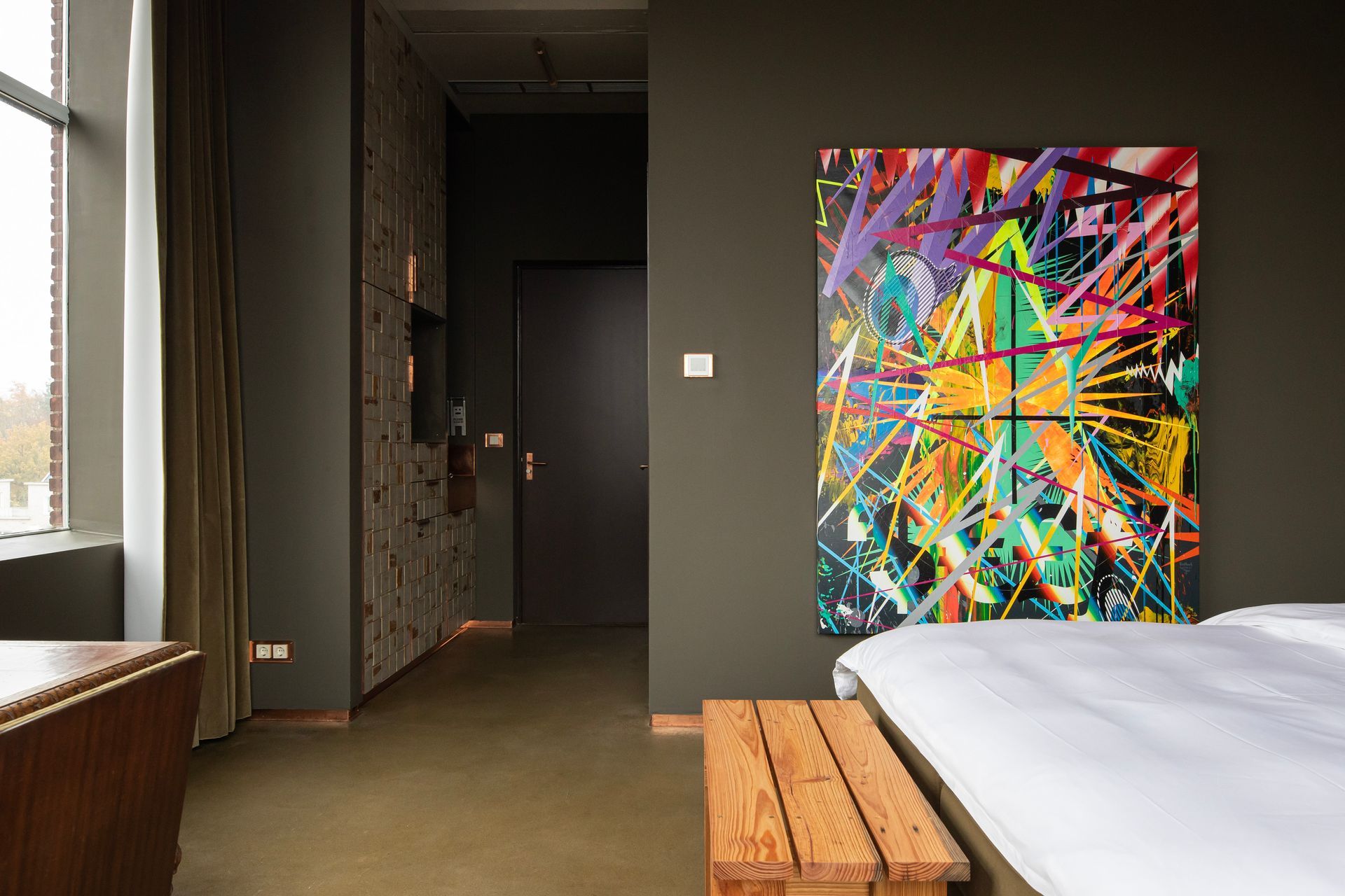 Within the field of interior design for hospitality, Piet Hein Eek represents a distinctive voice. His approach moves away from conventional luxury and instead proposes a more narrative and sensory experience, where design tells stories of materials, time and human work. The Hotel Piet Hein Eek occupies the third floor of the designer’s complex and features 13 distinctive rooms. No two rooms are the same: they differ in colours, materials, details and furniture, often designed in dialogue with artworks. On the floor below, the reception, restaurant and bar form a vibrant open space that also hosts the WonderRoom, where art, antiques and design objects are displayed. Guests can also access the rooftop terrace Dakbar, offering panoramic views over the industrial landscape of Eindhoven.