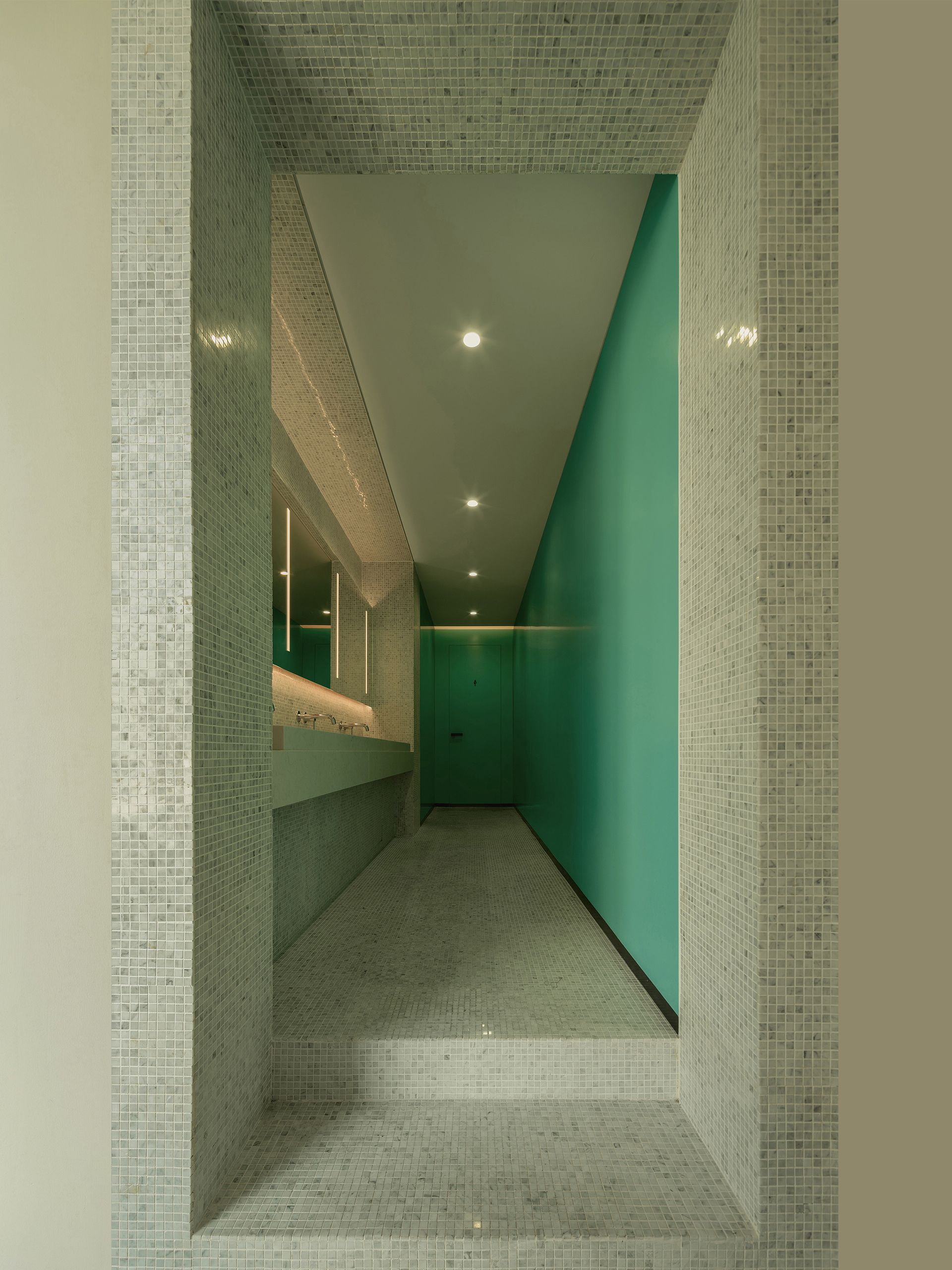 As the evening sets in, the outdoor courtyard transforms into a tranquil retreat for the studio team. Subtly framed by semi-enclosed openings, the courtyard blurs the line between interior and exterior, allowing people to experience the interplay of light, shadows, and greenery in a natural, unobtrusive way. The courtyard platform doubles as seating for short breaks or as a seamless extension of its surrounding environment, creating a harmonious dialogue between people, space, and nature.