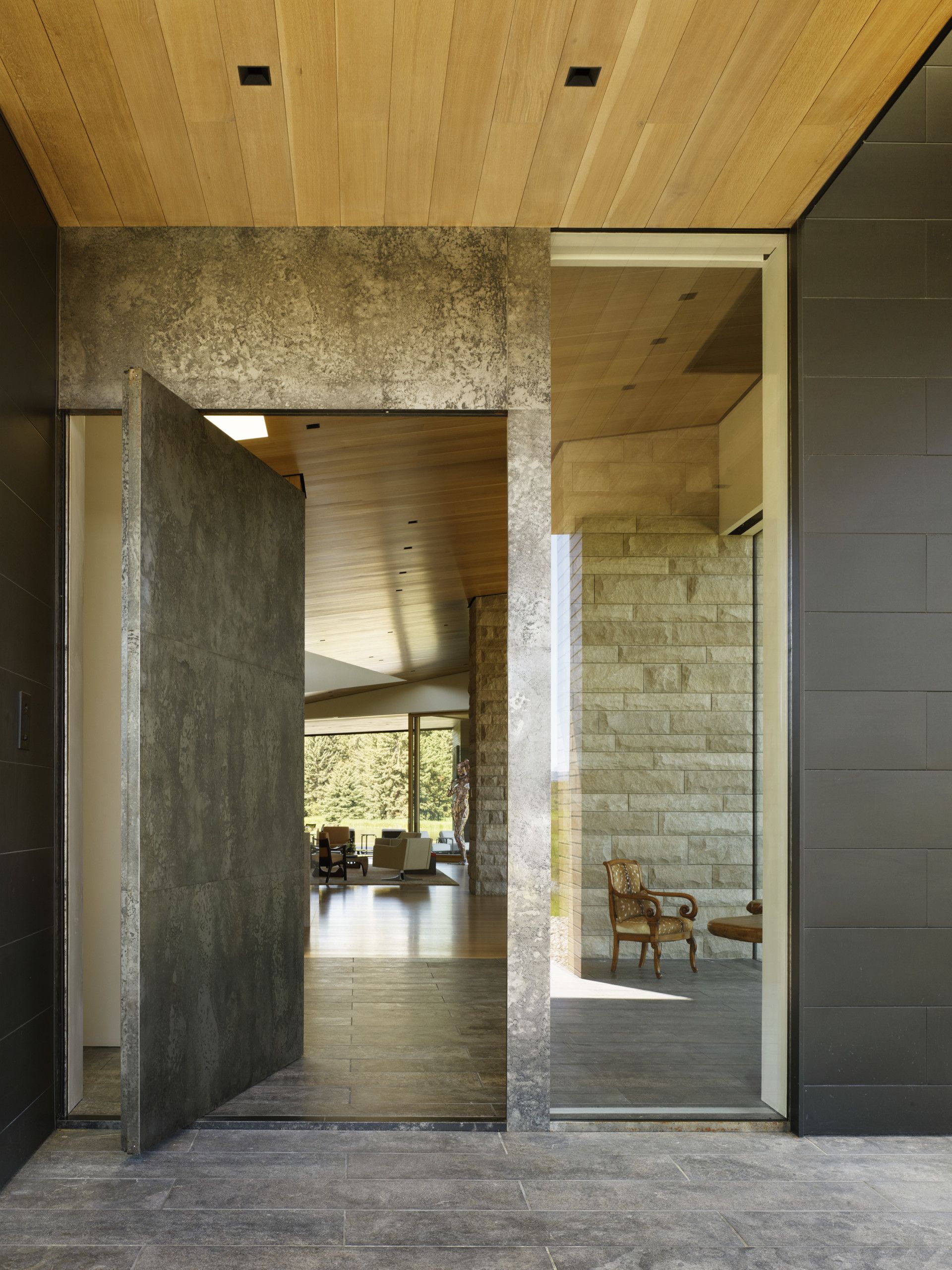 Inspired by a series of existing corrals along the northern edge, the house represents not only the history of the property, but the region as a whole. Here, the simple shed form has been mimicked and abstracted, providing deeply carved overhangs that create shelter and a signal for entry.
