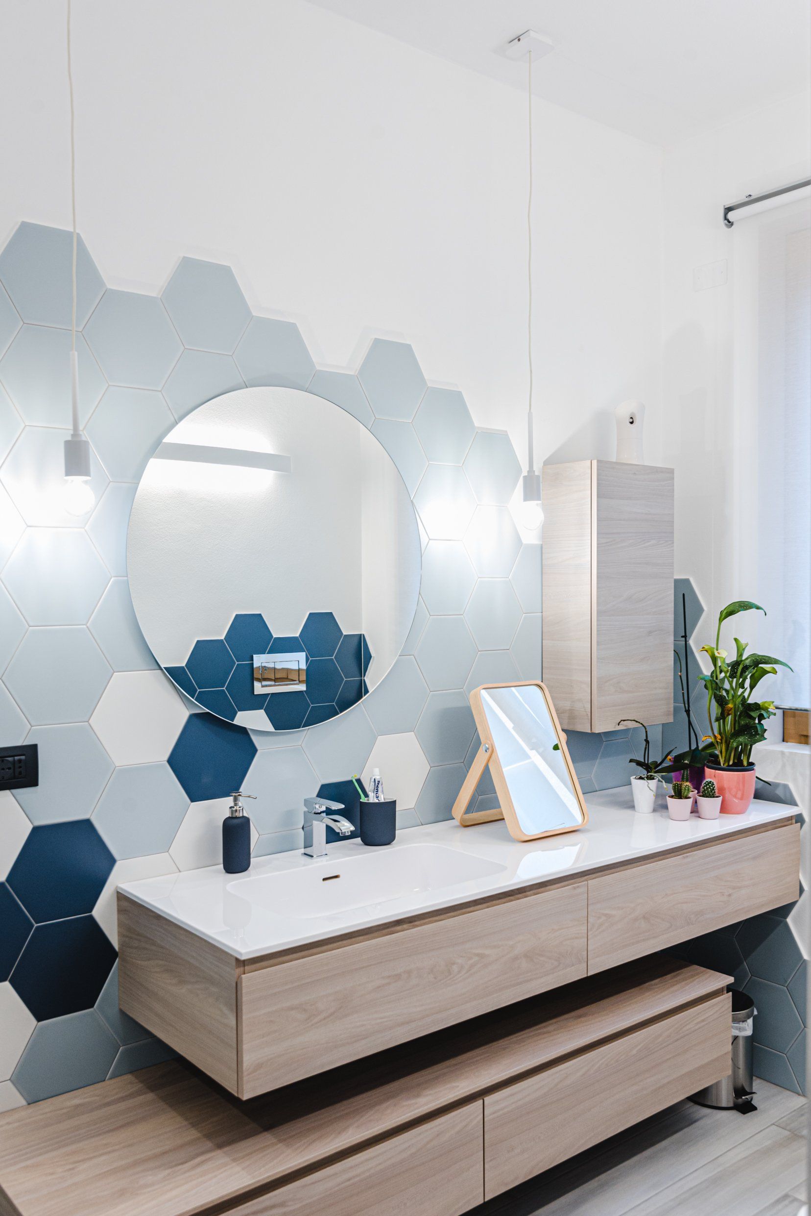 In the two bathrooms, the areas used for relaxation by the owners at the end of the day, there are also lights dedicated to both the sink area and the lighting of tiles and sanitary fixtures, respectively with the Metal lamp in the first bathroom and with the Thank You and Curvè wall lamp in the second.