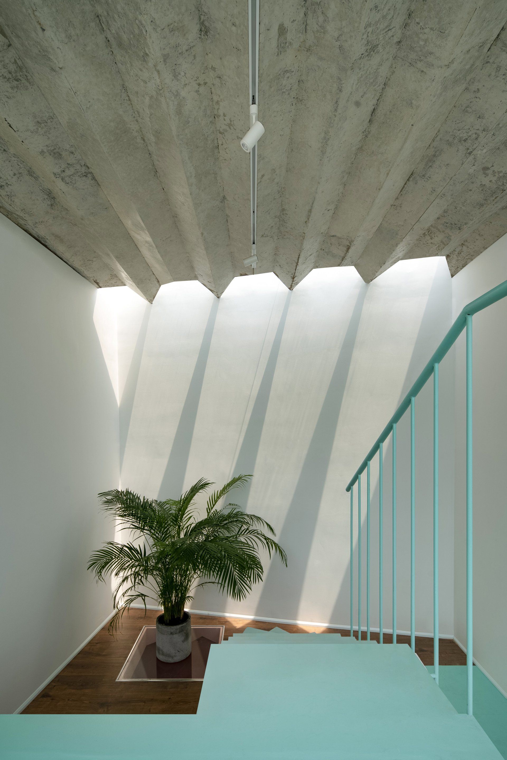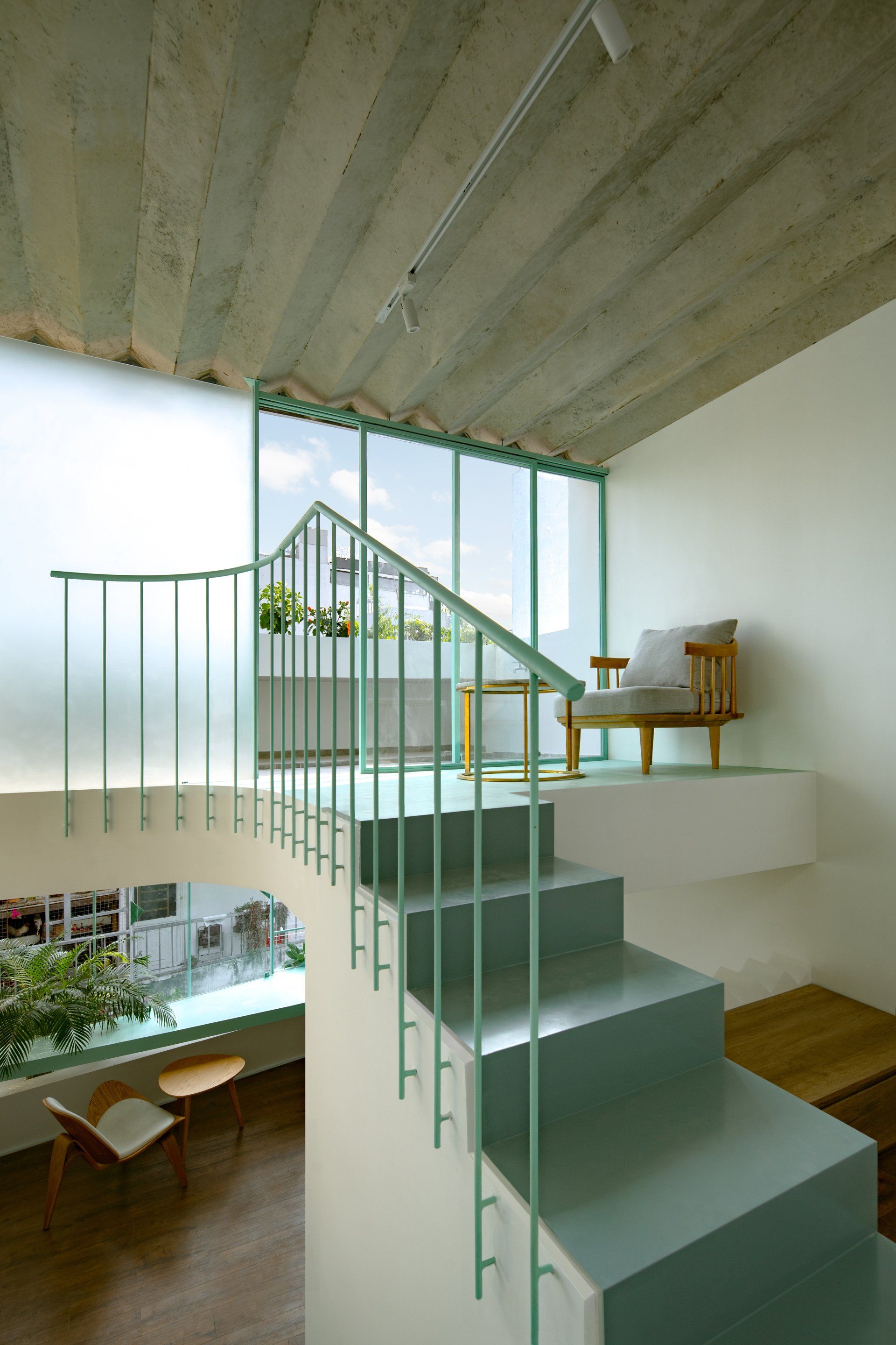 The owner is a young woman living with her retired parents. Besides fulfilling the functional needs, the design also provides a room for hobbies such as reading, painting, playing music. This ‘mezzanine’ space generated the level difference between the bathroom block and bedroom block upstairs.