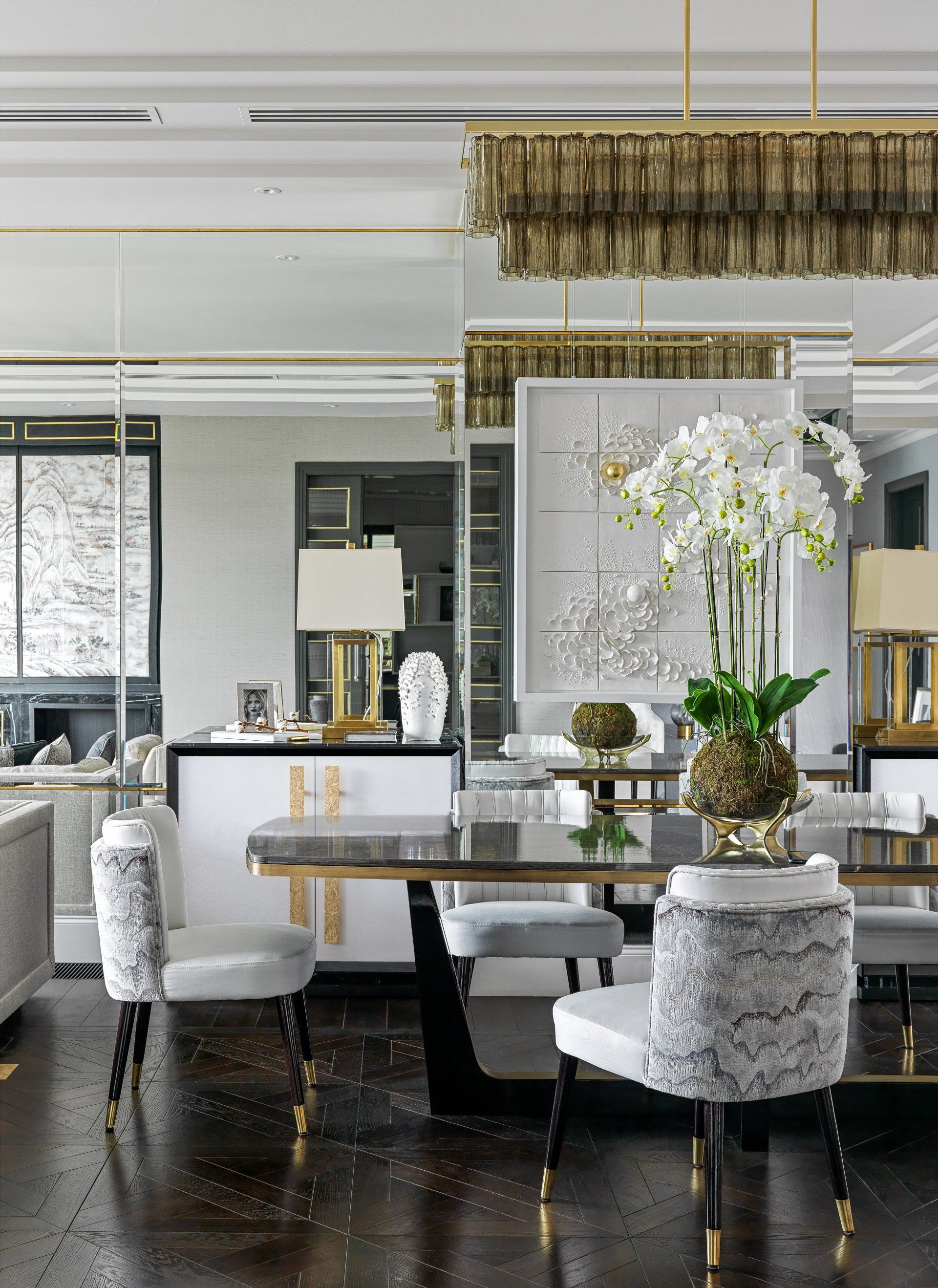 Olga Ashby Interiors designed a 3000 sq. ft. penthouse in Moscow’s city centre ticked all the boxes for the stylist client, who requested a spacious residence to host various dinner parties as well as the need to accommodate family members when they were visiting Moscow.
