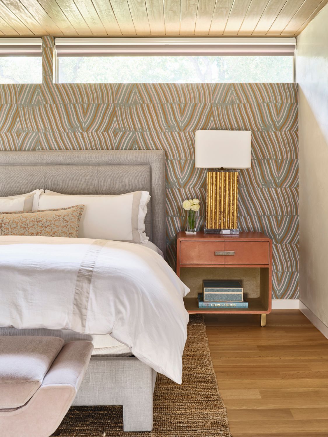The main house connects to an existing casita with a second level addition. A master bedroom and bath tuck neatly just beyond the open tread staircase. Upstairs, kids’ rooms have individual balconies with unique views to the backyard and surrounding hills. Exposed wood decking and wood beam ceilings and rock walls in the original home are carried through the design of the home, both existing and new. Interiors are warm and inviting with plaster walls and terrazzo flooring complementing white oak cabinetry. Bedrooms, office, and stair atrium feature white oak flooring. Carefully curated art adds pops of color. Landscaping softens the exterior and a carport mimics the pool canopy. Large expanses of covered patio and open-air exterior space (1,099 square feet) extend the living area while offering various levels of protection from the elements.