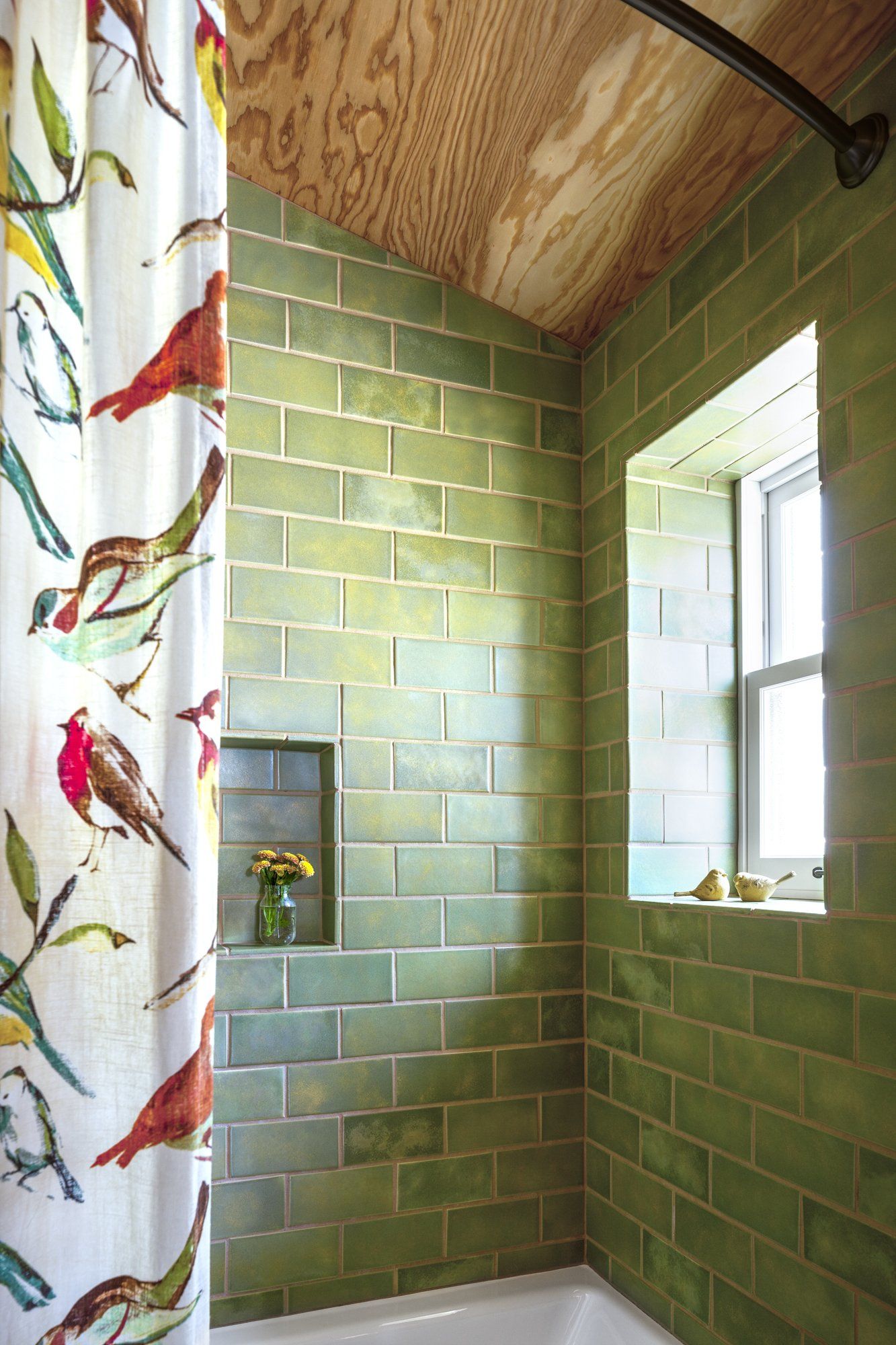Interior furnishings are mix of Old Hickory (in business since 1899), bright powder-coated metal furniture from Room & Board, and some custom designed pieces mixed with legacy pieces (literally salvaged from the client's storage locker). Other selected interior elements of note include: Ralph Lauren outdoor fabrics and bespoke pillows; vintage Ficks Reed lounge chair reupholstered in a spunky Bretano outdoor plaid; rugs from Driscoll Robbins; Dekton countertops; Etsy vendors for both shower curtains; Pratt & Larson tile; and, pendant lighting by Barn Light Electric.