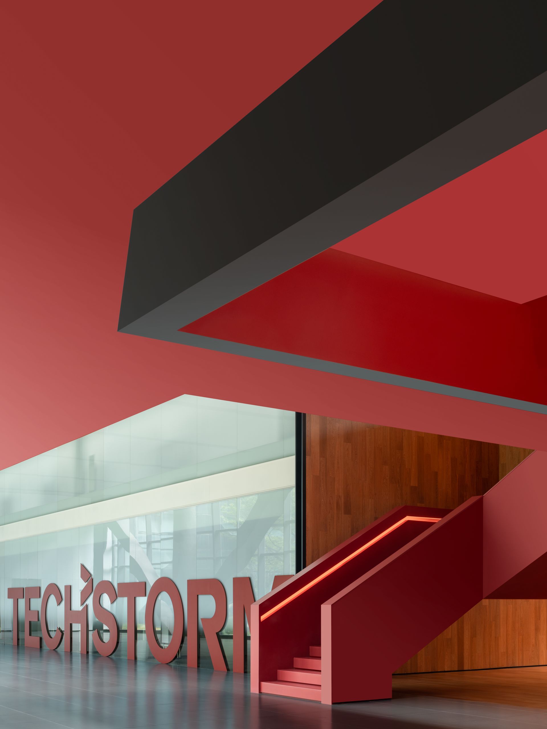 The designer Fang Lei is inspired by the Daoist idea of "Dao giving birth to all things". It's based on a thorough understanding of the project's background and Techstorm's company culture and philosophy. By tapping into the building's unique features and ceiling heights, Fang Lei has managed to seamlessly incorporate the exhibition concept into the space. The overall design emphasizes the site, atmosphere, emotion, materials, and symbolism.