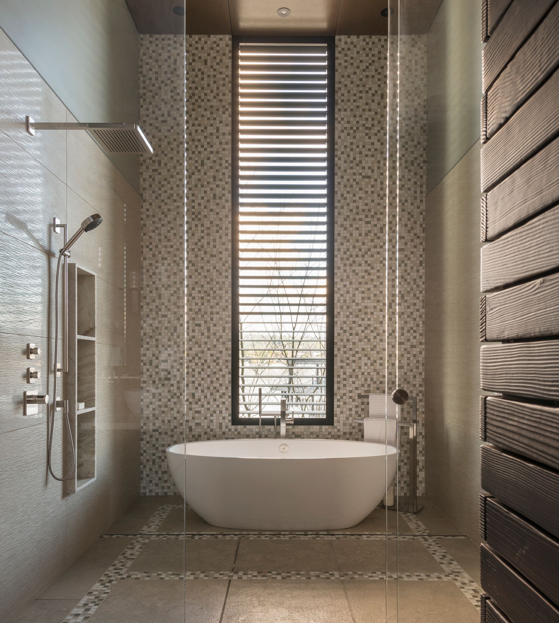 Low-E energy efficient double-pane thermally broken steel windows and doors made from 100% recycled materials with narrow sight lines allow for unobstructed views of the surrounding landscape, maximize daylighting, and provide passive ventilation. High R-value foamed-in-place insulation was utilized throughout the structure for an energy efficient envelope. Geothermal energy is captured to heat/cool the building through radiant floor heating/cooling. Ultraviolet water purification systems along with natural in-place filtering beds within the water features allow for the use of recirculated/recycled water and lake water can be utilized as auxiliary irrigation (as allowed by the local jurisdiction) to conserve fresh water.