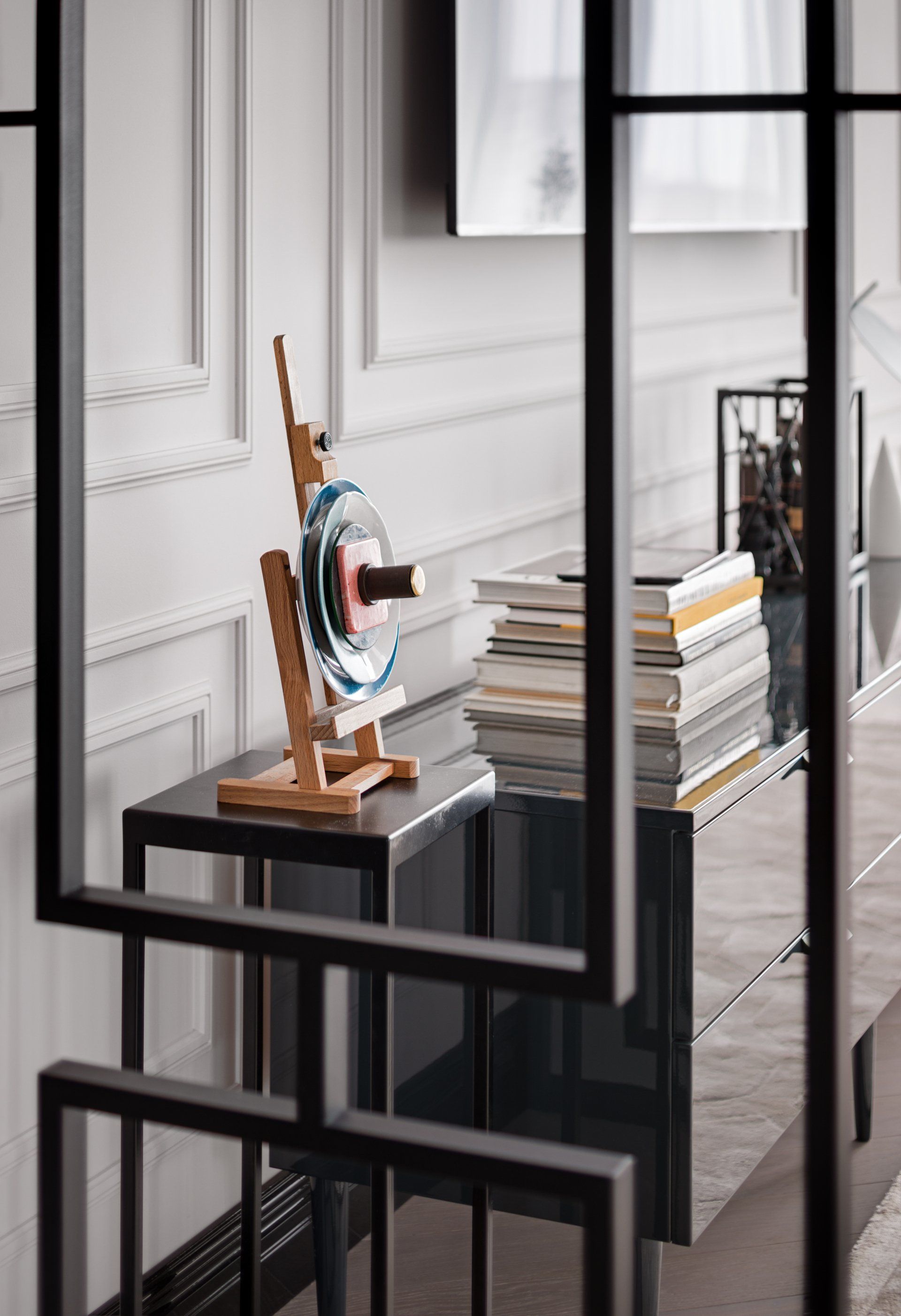 The space for her resembles a sophisticated Parisian apartment. The designer framed the wall with moldings and added some straight accents thanks to the lamps from the Portuguese factory Castro Lighting, which she personally purchased from ISaloni.