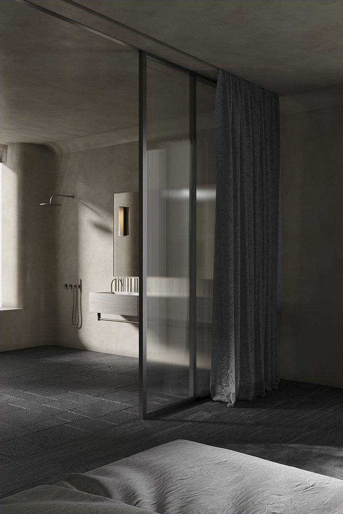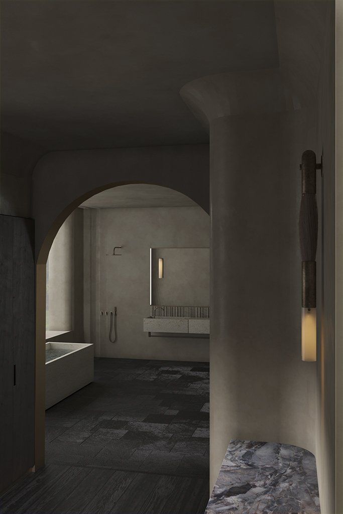 Swathed in a muted material palette of marble and hand-brushed plaster, space is a place of serenity and reflection. The materiality of grey travertine that will weather over time and of timber boards that are oiled, not sealed, to keep their surface alive to their use - these are real materials that, unlike synthetics, will patina and become improved and more complex with time. They are also materials that are as old as the practice of building itself.